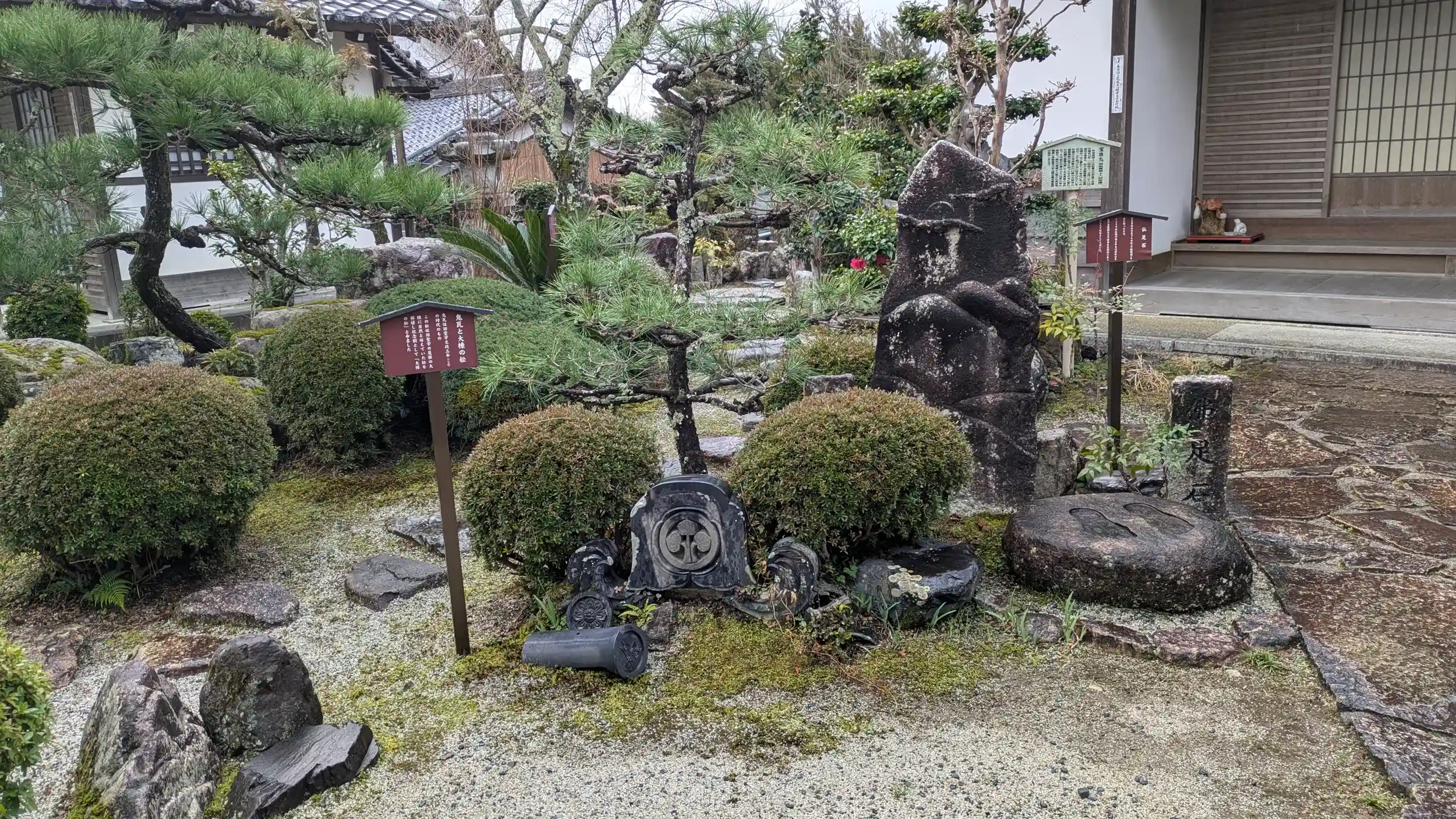 蓮心坊お隣。こちらも山門が開いていたのでお詣り。狭いながらきれいな庭園がありました😊蓮心坊もこちらが管理されているのかな?ちょうどお庭が蓮心坊の裏につながっており、平和文殊菩薩様が鎮座されておりました😊龍安寺で見覚えのある「吾唯足知」の言葉違いバージョンがありました😊