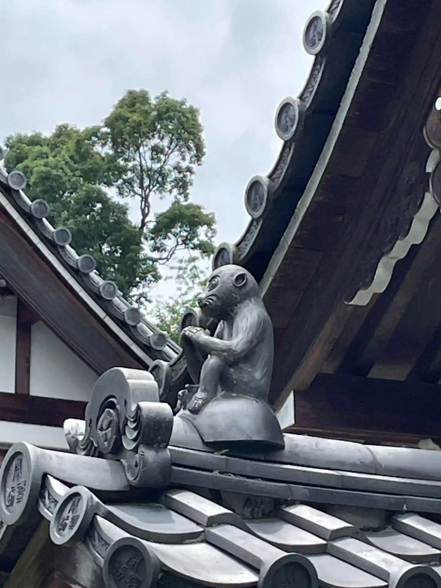 山門の瓦の上に猿