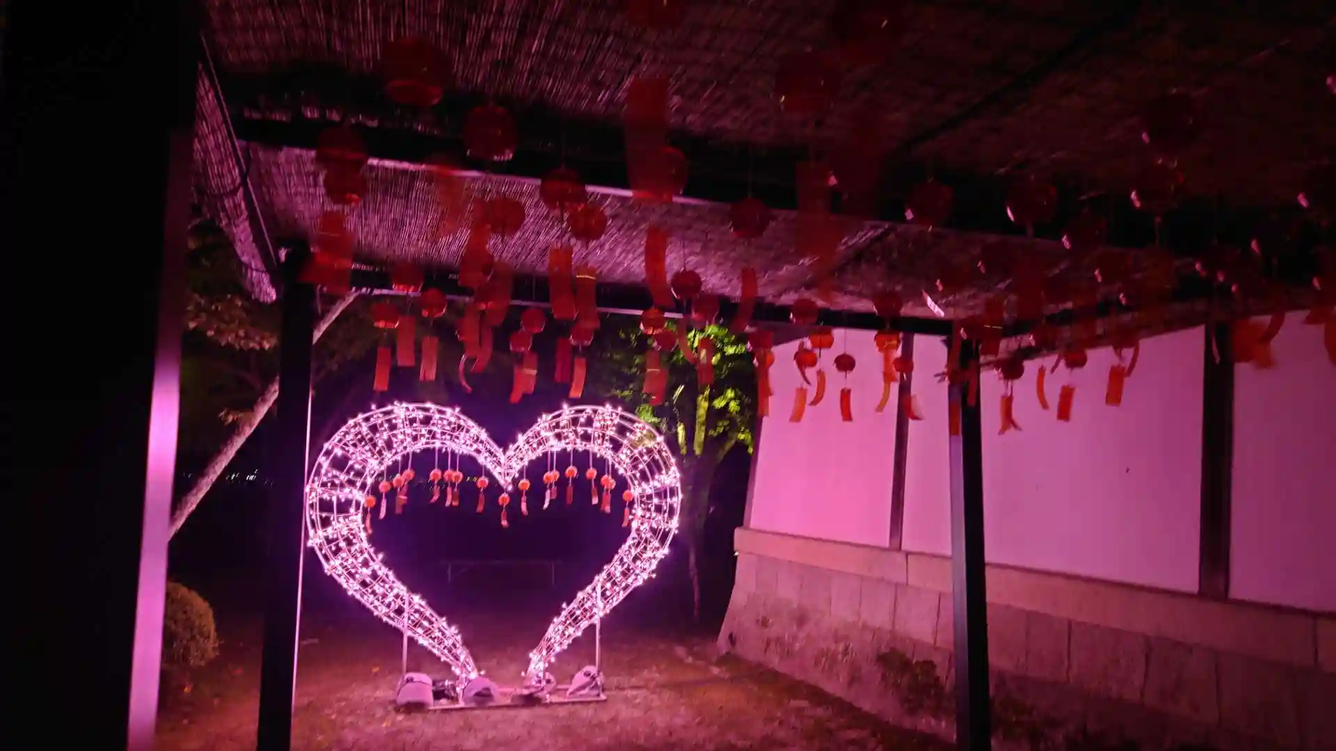 参道の坂道は様々な色に彩られ、手水舎の龍は青く、風鈴の道は暖色に。