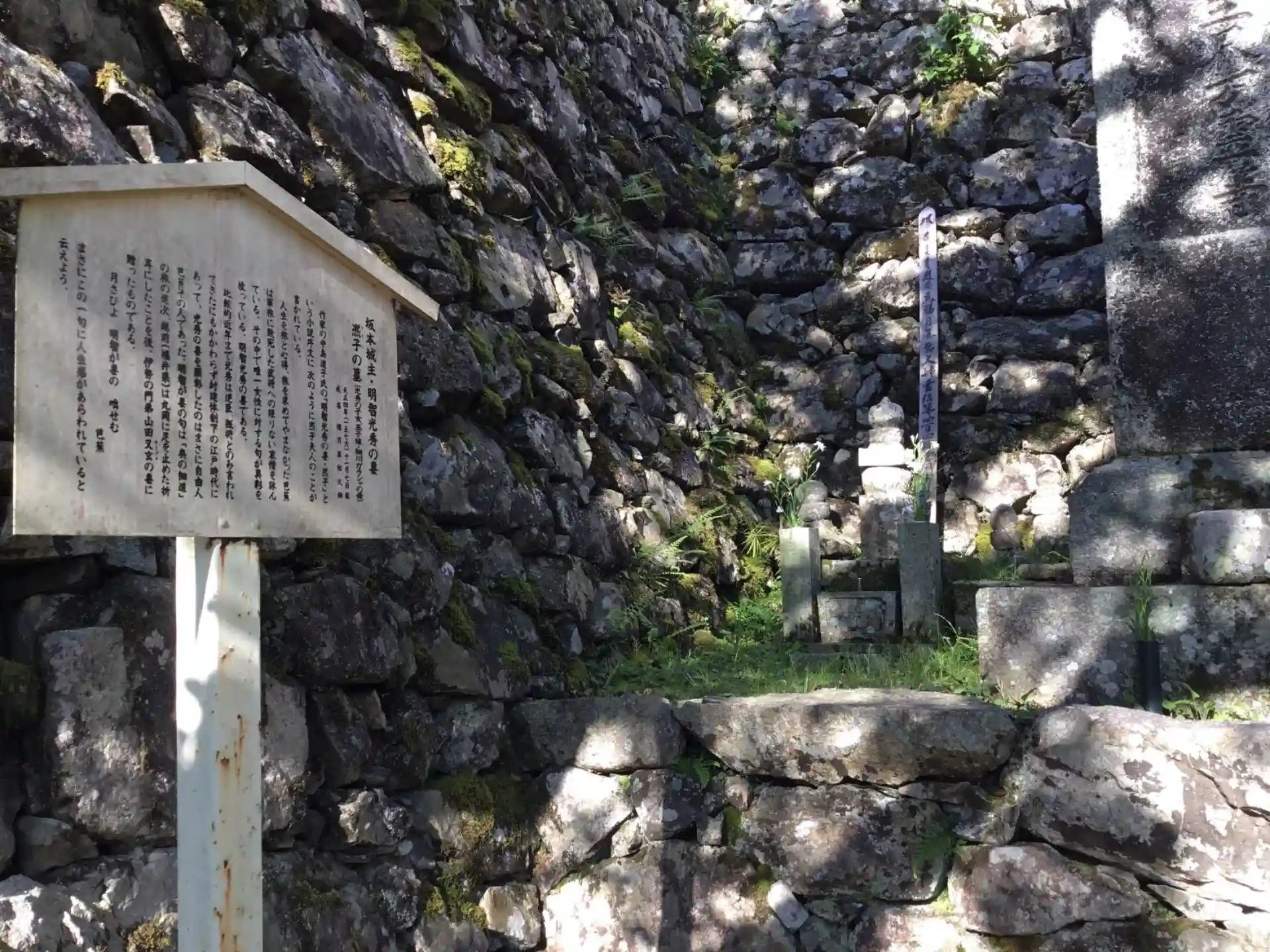 織田信長による延暦寺焼き討ちで焼失した後、明智光秀が寺の復興に尽力したことから、境内には、光秀一族の墓もあります。