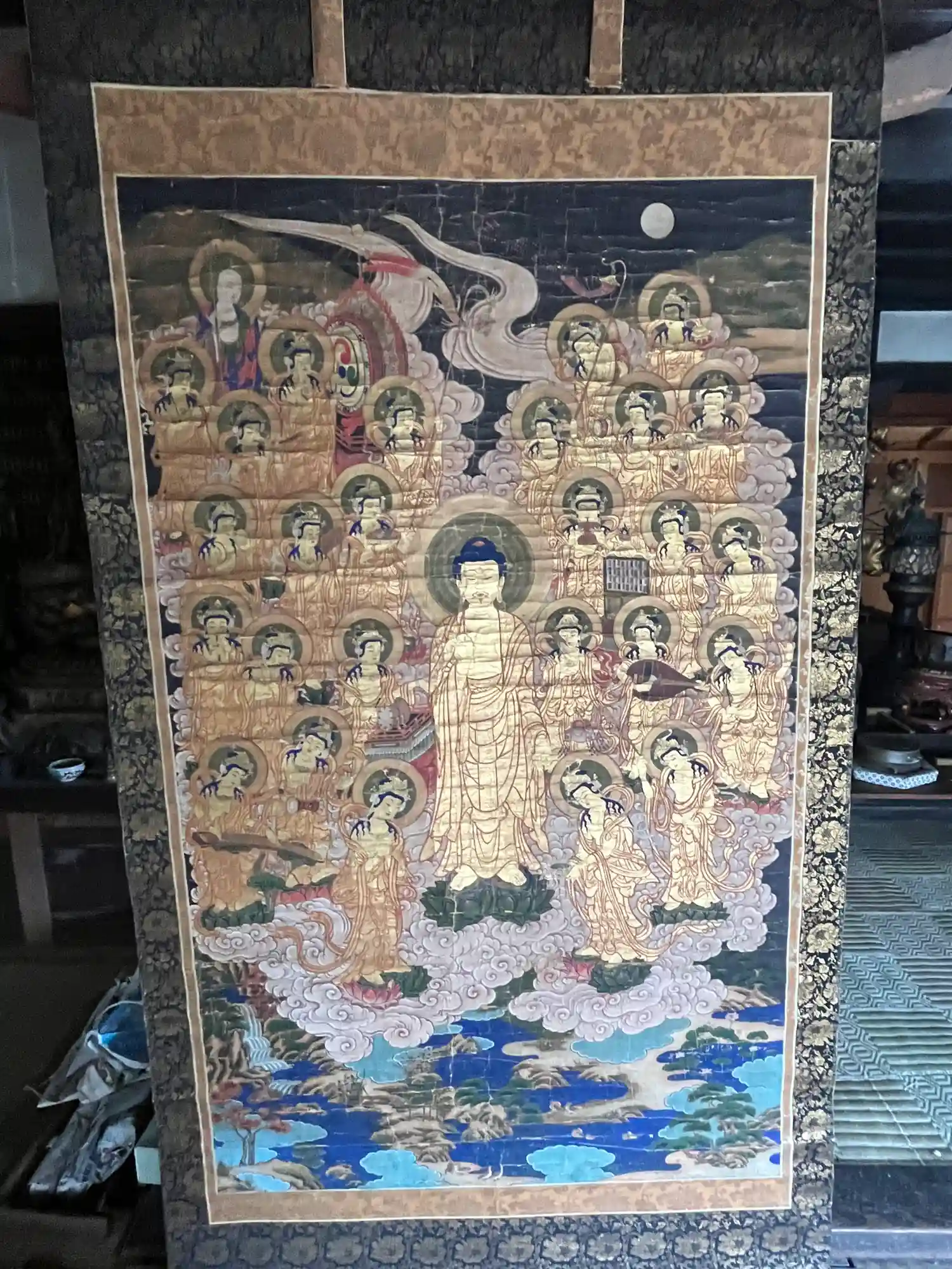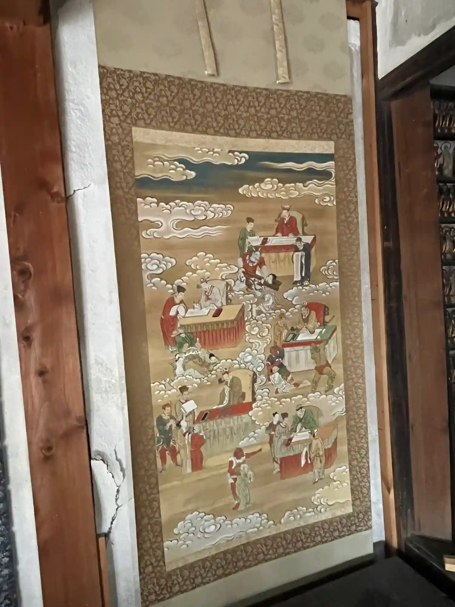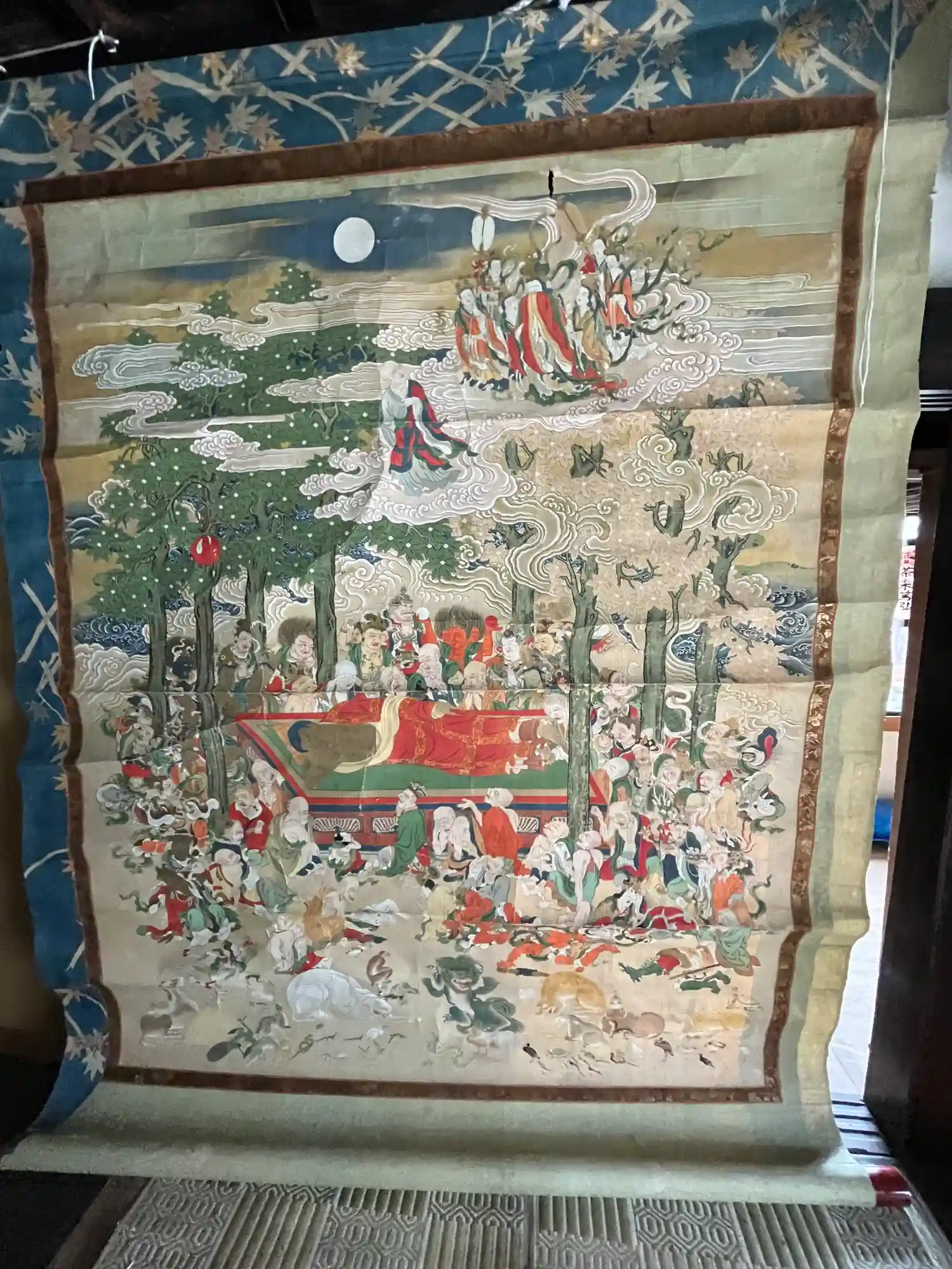 大きな掛け軸。お釈迦さまの涅槃図のようですね。