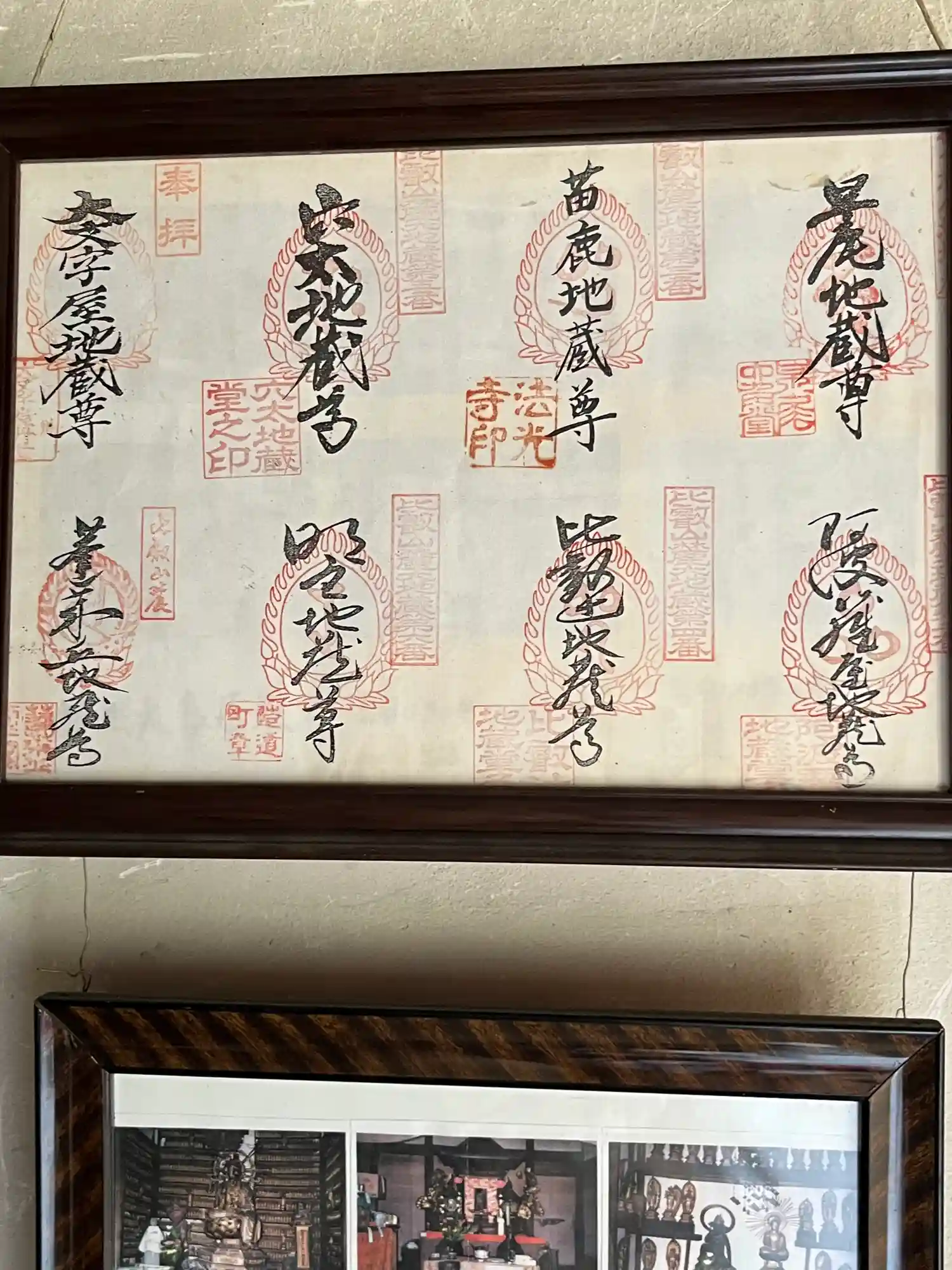 こちらの御朱印は、明良地蔵堂の中に飾られていたものですが、上段の1番左の御朱印が、大文字屋地蔵尊の御朱印です。☺️