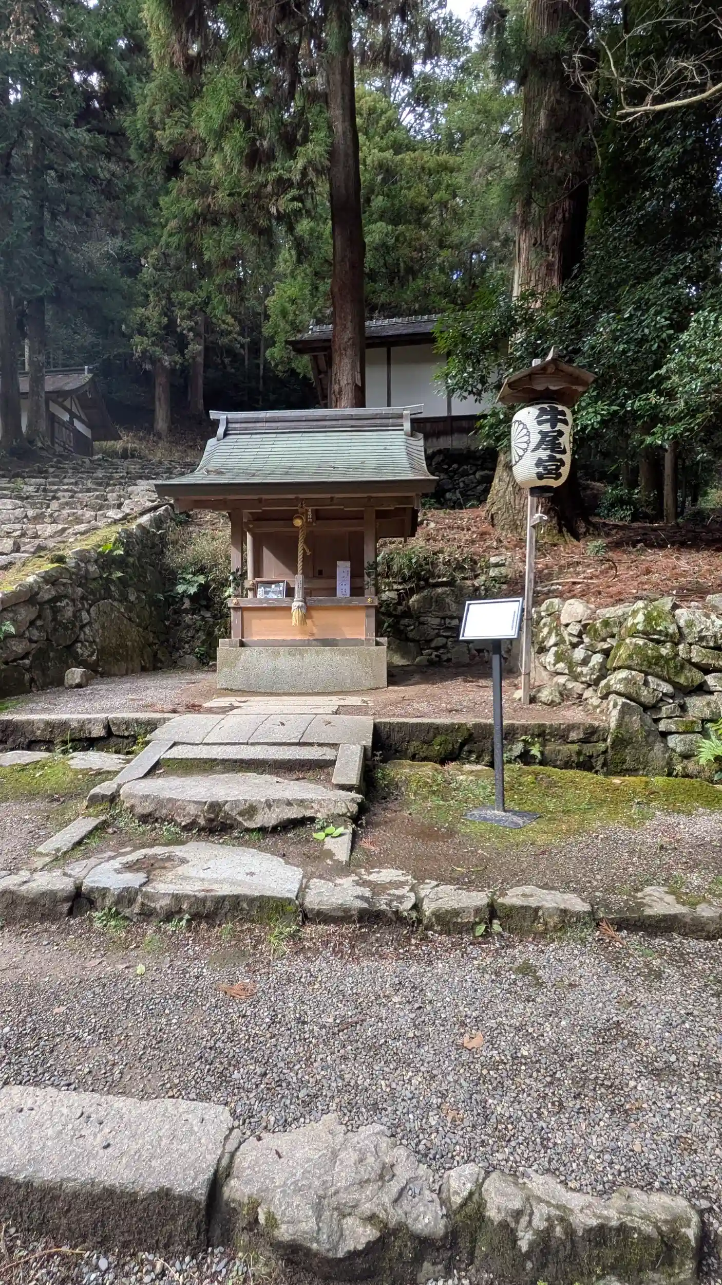 日吉大社東本宮から西本宮へ向かう途中で三宮と牛尾宮の遥拝所があります。ここから八王子山の参道(登山口)があり金大巌と呼ばれる日吉大社の始まりの場所があります。時間と天候と登山用意があれば向かいましたが今回は遥拝所での参拝に留めておきました😅たぶん上ってたら時間切れに・・・😅