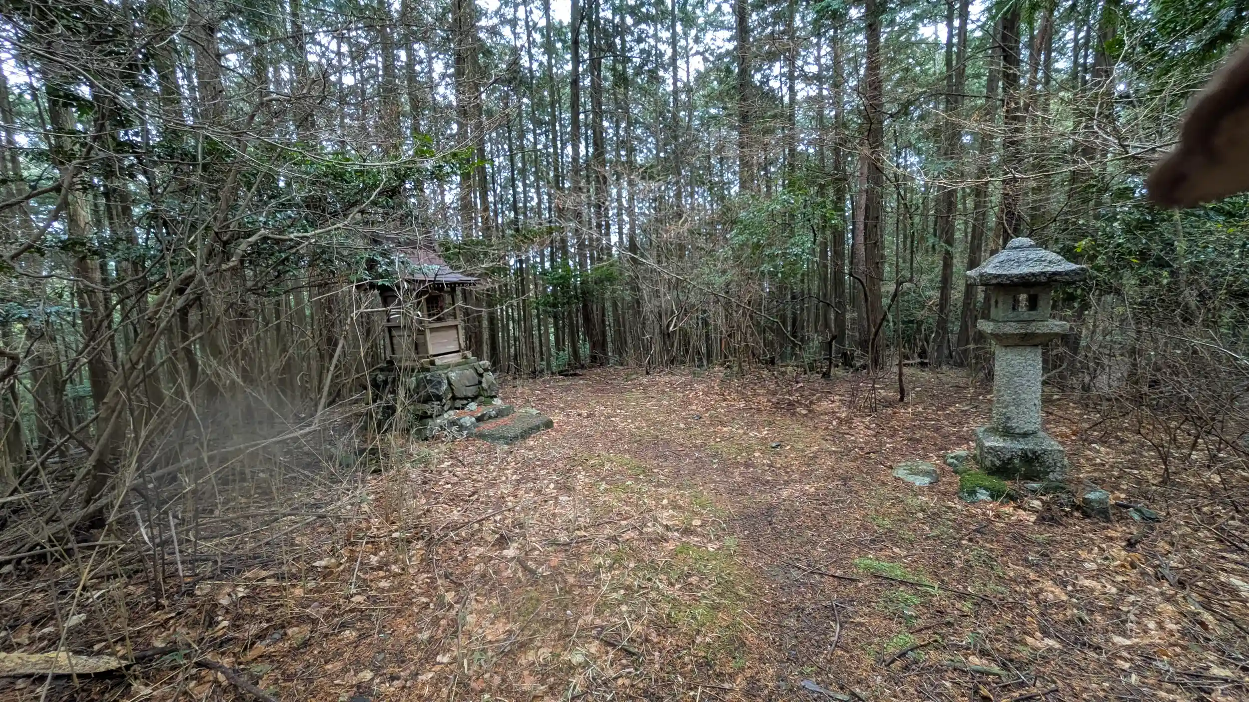 西教寺から飯室不動堂へと向かって北へ進むと飯室不動堂への山道の道標があり・・・危険な香りがしましたが春日社を経てとあったのでこれは行かねばなと思い山道へ・・・やってもた😫のっけからめっちゃ急斜面な山道で傘とスマホで両手ふさがっていてはやばいと判断し写真は断念。登山に集中し、結構上っていくと急になだらかな道へと変わりました。少し進んで行くと小祠を発見😲燈籠と祠のみでしたがこの先慈忍和尚の廟所まで何もなく、こちらが春日社なのでしょう。お詣りして先に進みました。春日社なので春日大神思っていたらと奈良坂春日社で奈良豆比古神社が引っかかり、おそらくこちらのほうかと思われます。となると御祭神は奈良豆比古神でしょうかね?まあもちろん由緒もネット情報もなく小祠のみなので詳細はわからずです😅