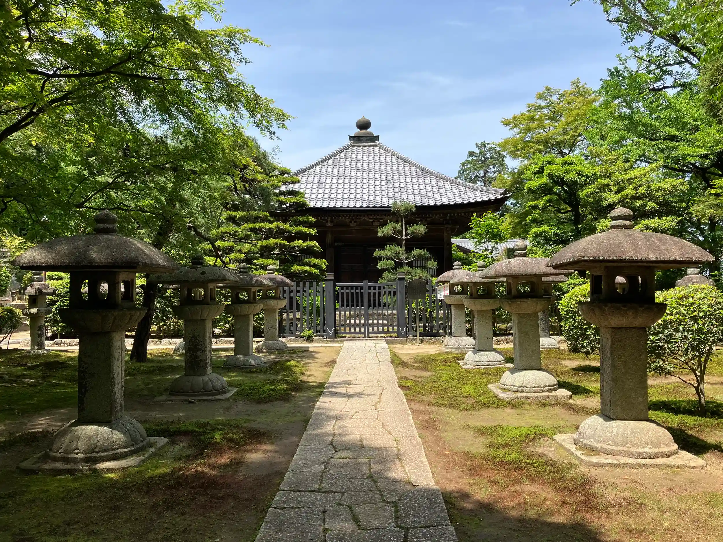 1877年の火災で焼失し、1879年延暦寺の西塔正観院、東塔南谷極楽坊、無動寺谷法曼院、横川鶏足院を移築し再建された。
