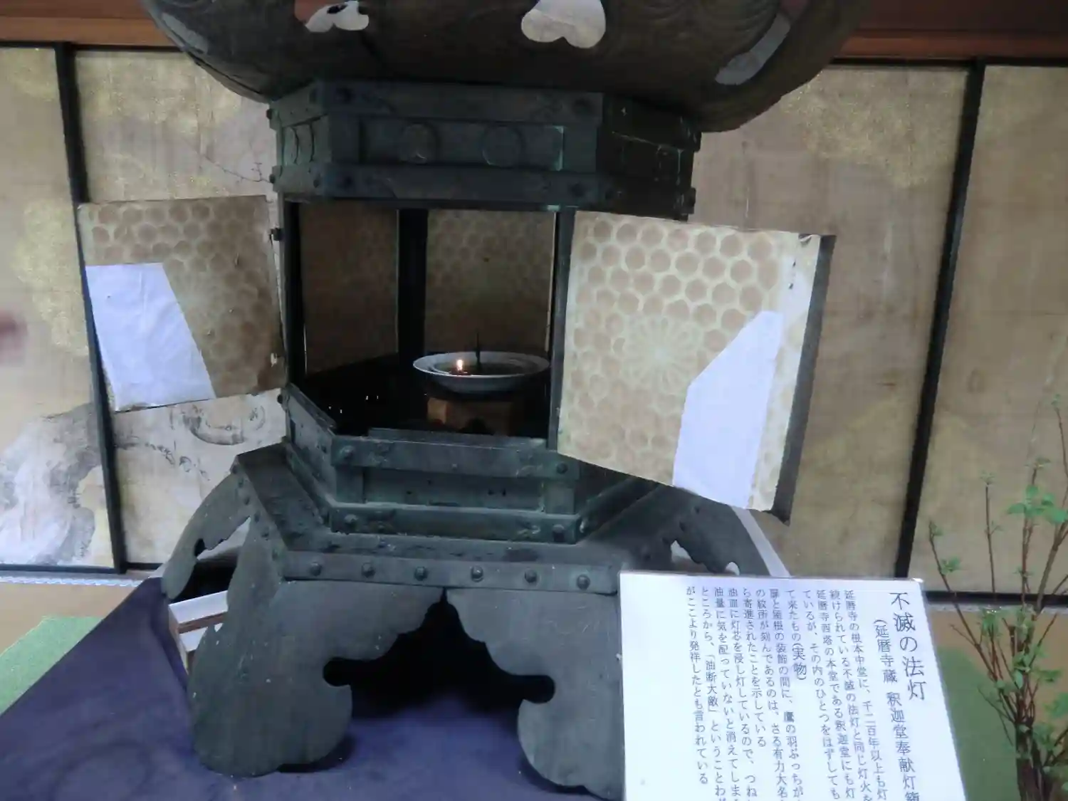 不滅の法灯(延暦寺の根本中堂の不滅の法灯と同じ灯火を西塔釈迦堂からひとつはずしてもってきたもの)
