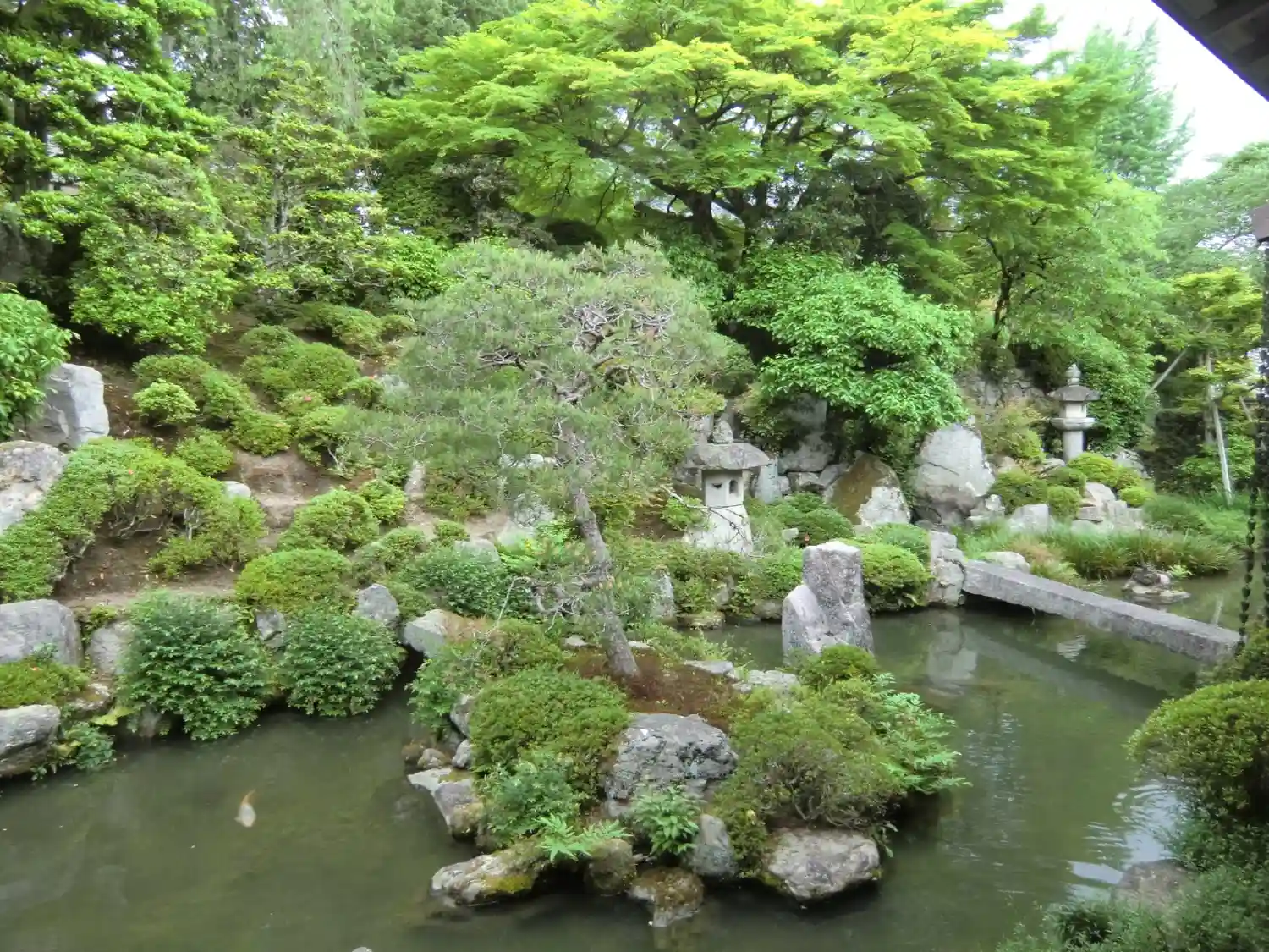 裏手の池泉式回遊庭園。小堀遠州の作と云われています。