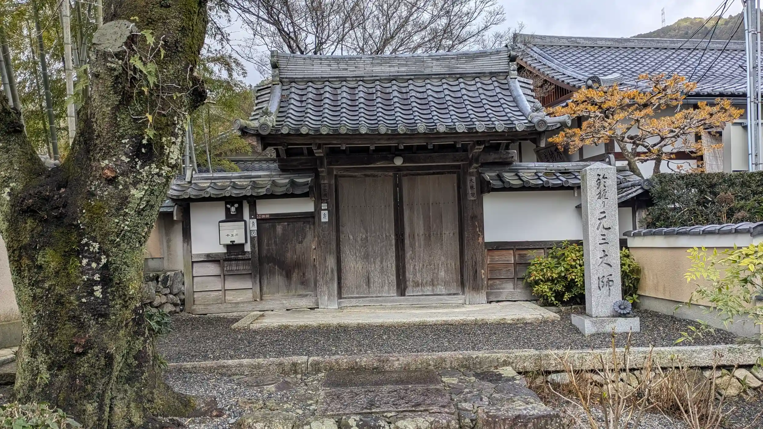 参道。三面大黒天の寺号石標
