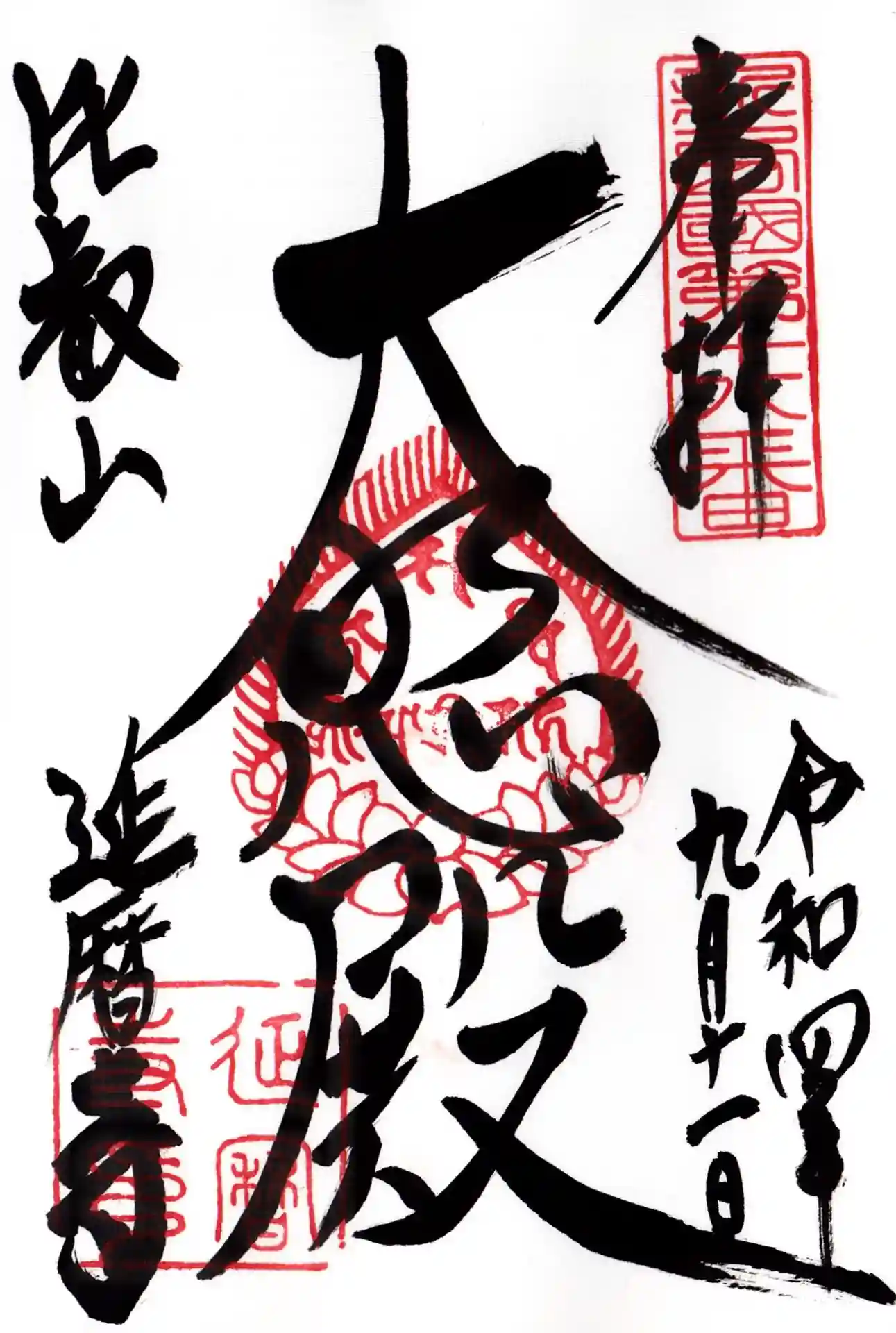比叡山延暦寺の大講堂の御朱印、大日如来