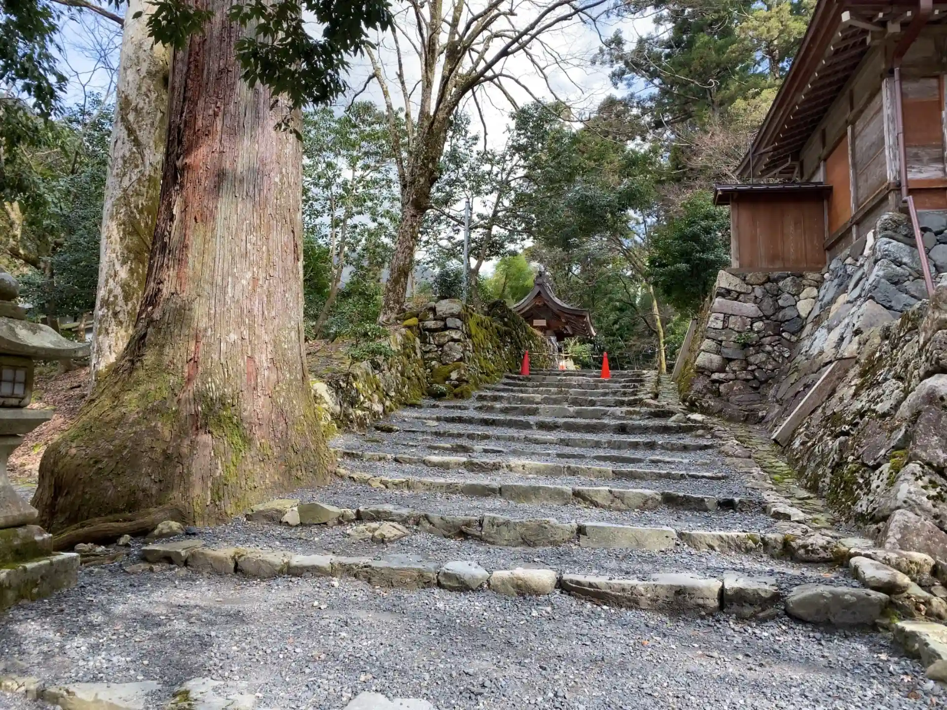 こちらは千日回峰行の創始者・相応和尚が開いた天台宗の道場。杉の巨木に囲まれた古刹を前にいにしえの修行に想いを馳せました。