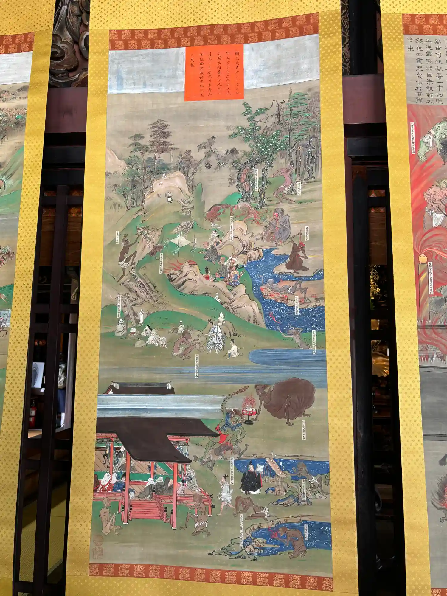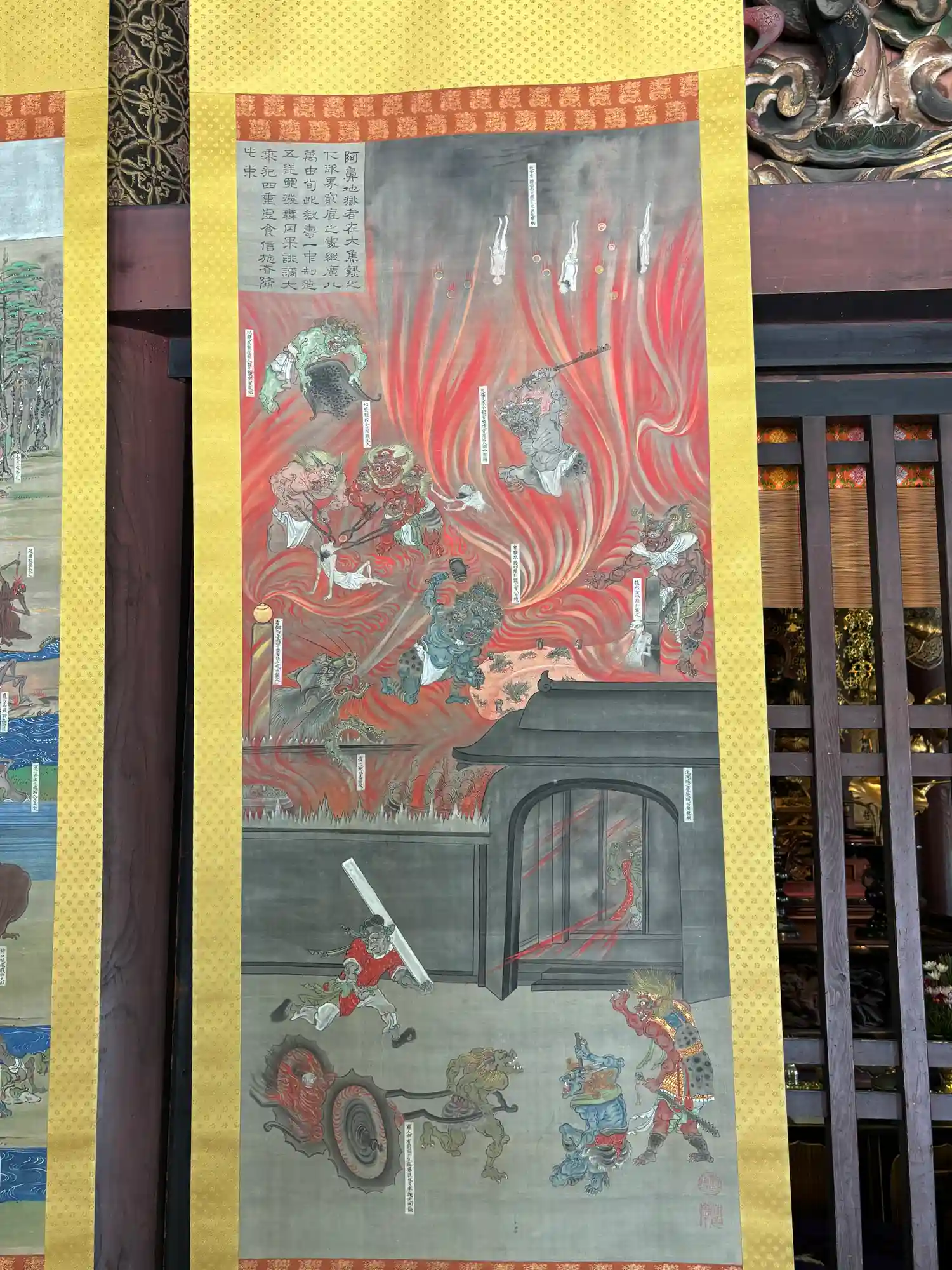 外陣に掛けられたレプリカの六道絵15幅
