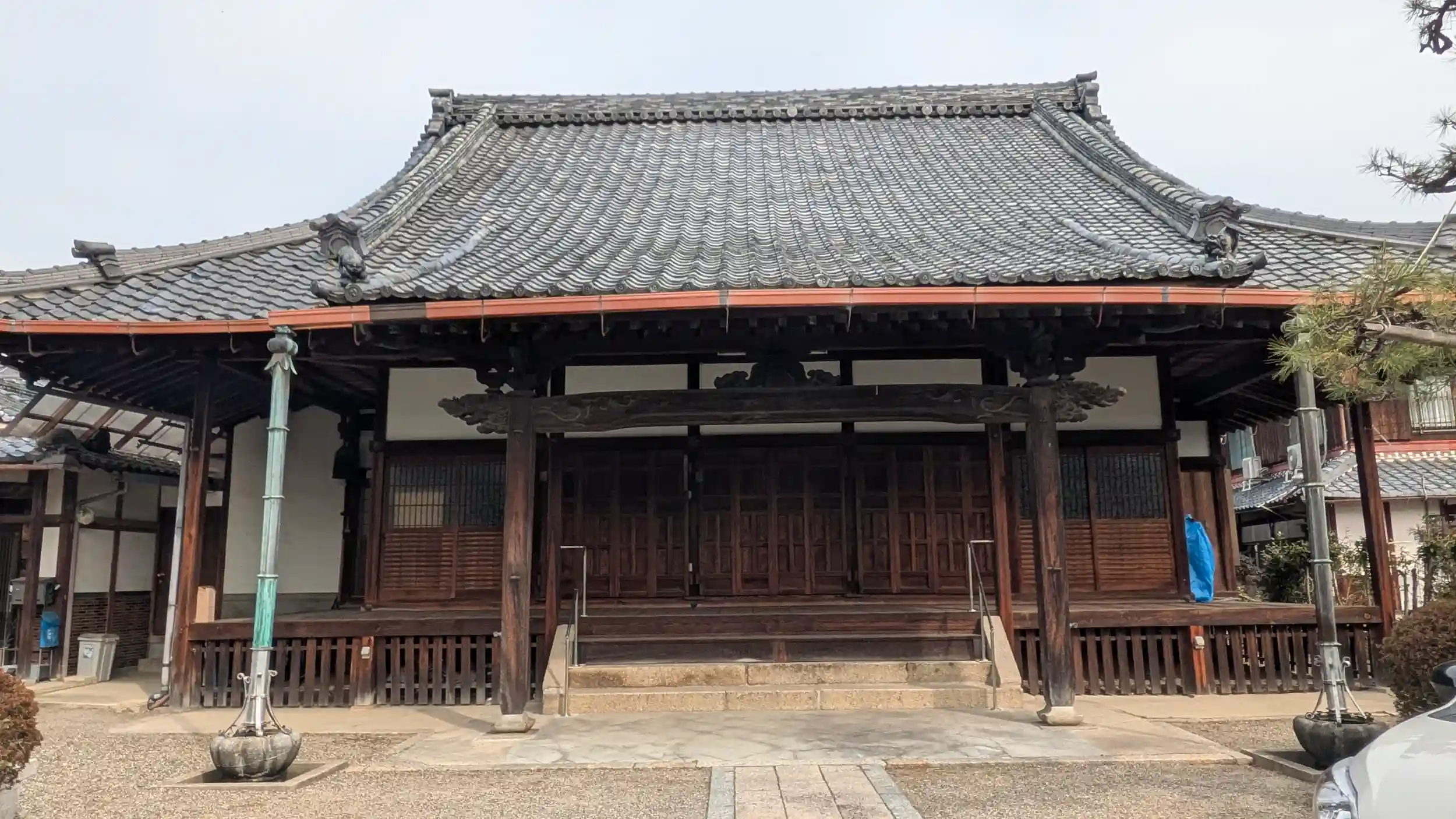 渡海神社の西すぐにある本願寺派寺院。山門右手の鐘楼に囲いがあってちょっと見かけない感じになってました。こちらも山門が開いていたので本堂前でお詣り。草津市の寺院は山門は開いてるとこ多い感じですね😊これで由緒とかあればなぁ・・・ということでこちらも情報なしです😅
