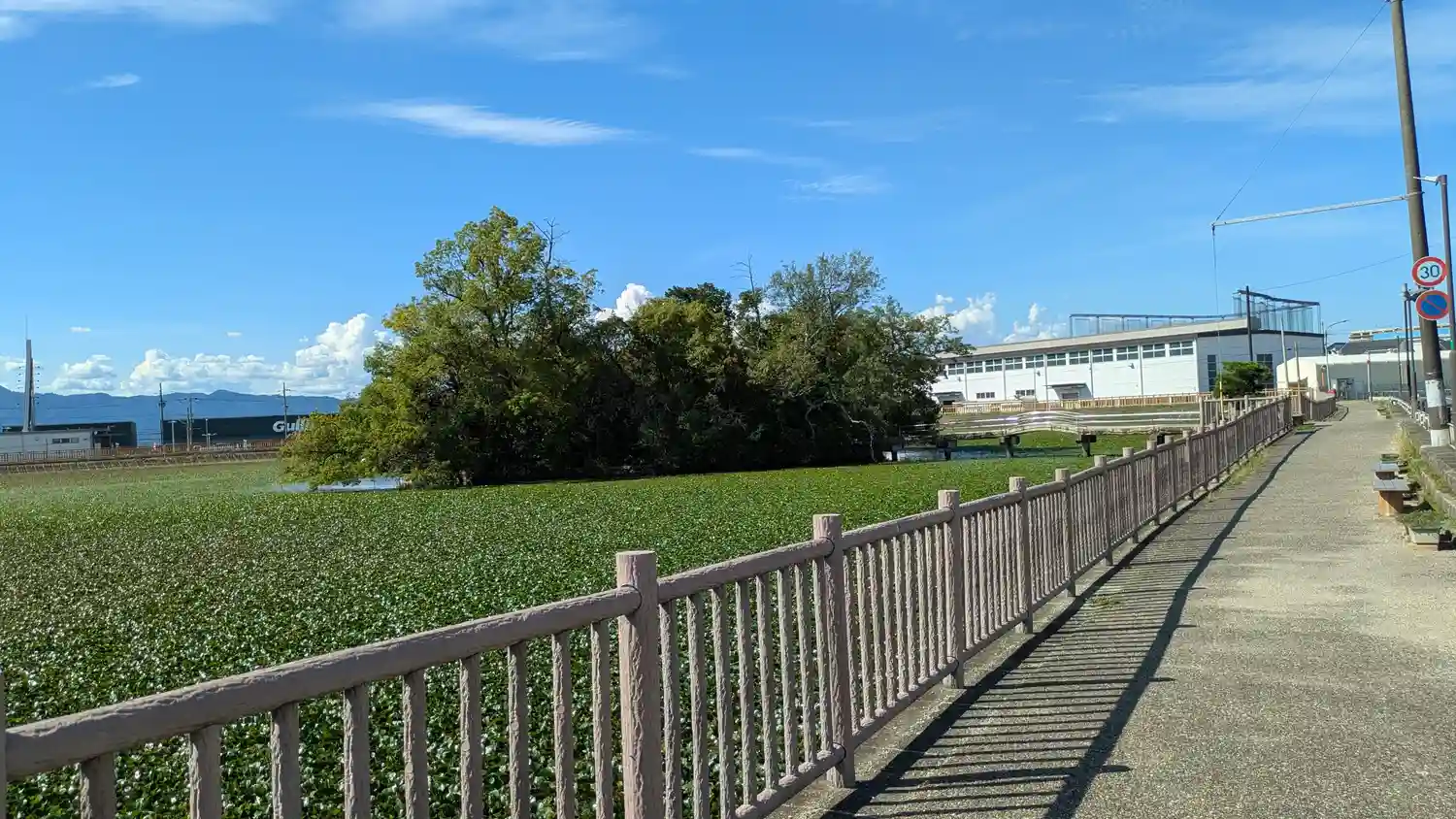 池は水生の植物で覆われてました
