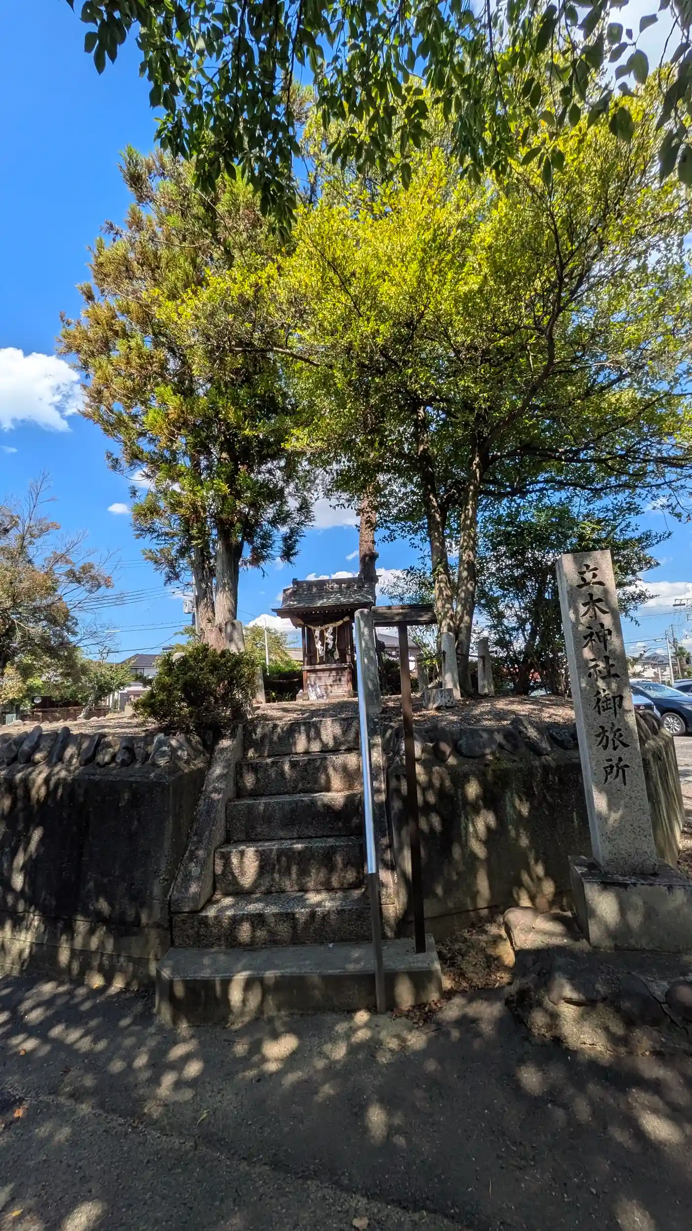 草津の古社である立木神社の御旅所。こんもりした高台の上に御神木と小祠。着いたら女性が祠の前で手を合わせていました。地域に大事にされているんでしょうね🤗