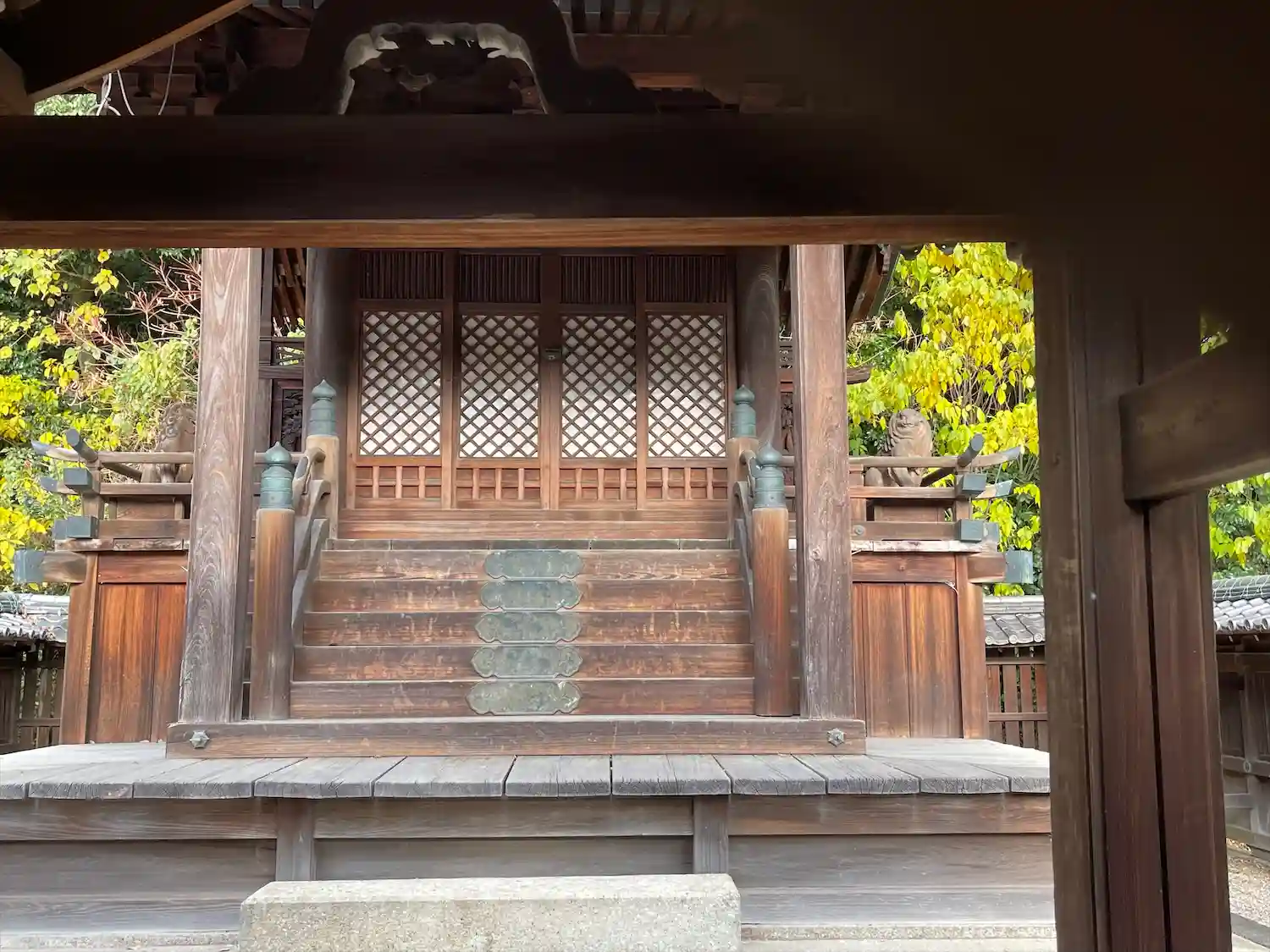 駐車場を奥に進むと境内、本殿の横に出ます
