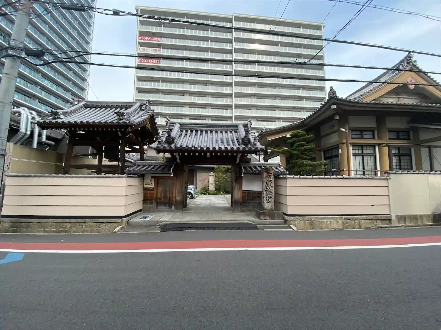 山門前に大路井道標が建てられています
