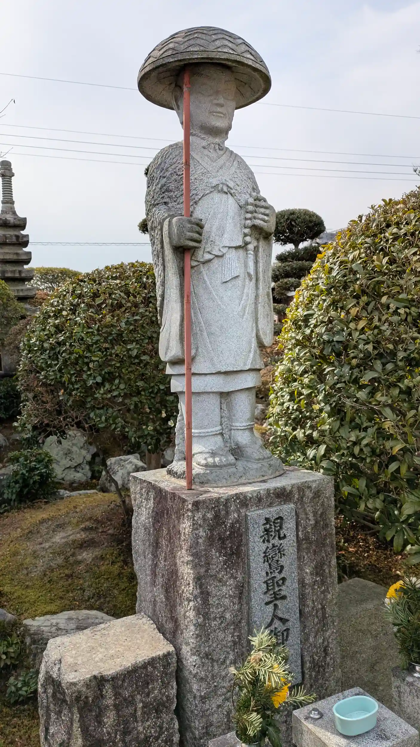 再び東へ向かい、山田正八幡宮手前で北のほうに鐘楼が見えたのでそちらへ。こちらも本願寺派寺院。こちらも山門開いており、本堂前でお詣り。ちょっと見た事ないお顔の親鸞聖人像がお迎えしてくれます😊よくある親鸞聖人像を見慣れていると思わず誰?となりそうです。親鸞聖人御像とあったのでそうだと思っておきます😅そしてこちらも情報なし・・・