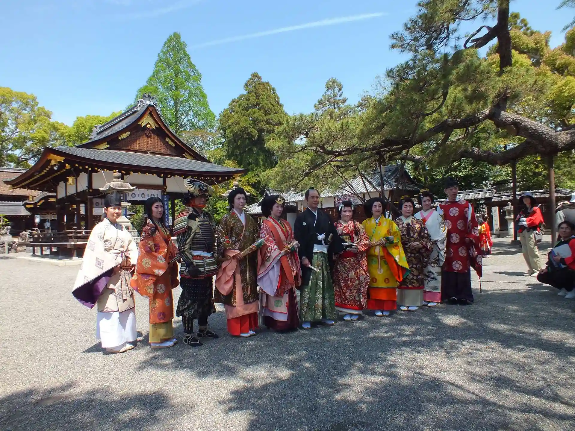その時代行列の主役の人たち、和宮、篤姫、徳川家茂らが、立木神社で祈願して、立木神社前交差点からde愛ひろばまでを練り歩きます。
