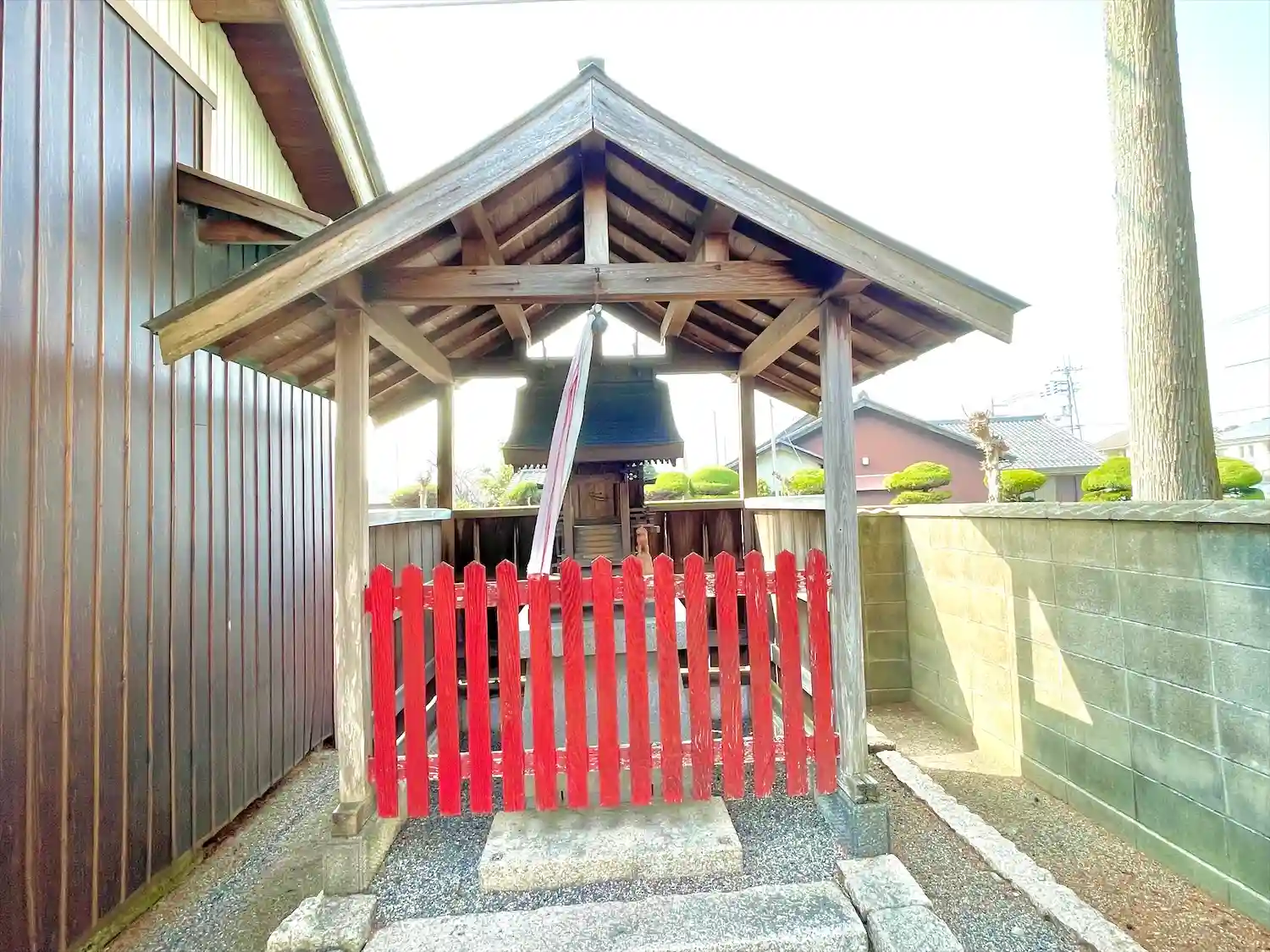 鳥居の横の木の間にも、もう1箇所勧請縄が掛けられていました。この一角は旧東海道の一里塚があった場所なので、それが関係しているのかもしれません。