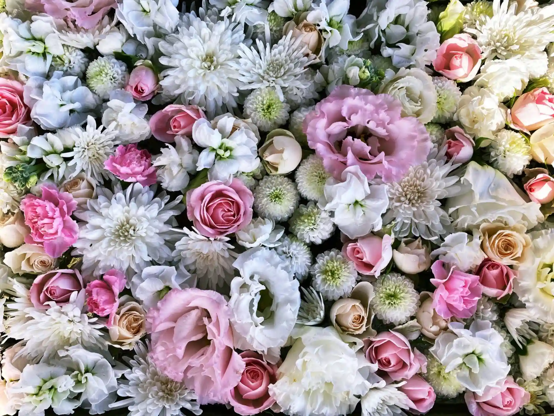 花手水をバラ、トルコ桔梗、菊、ストック、カーネションで彩っています🌸