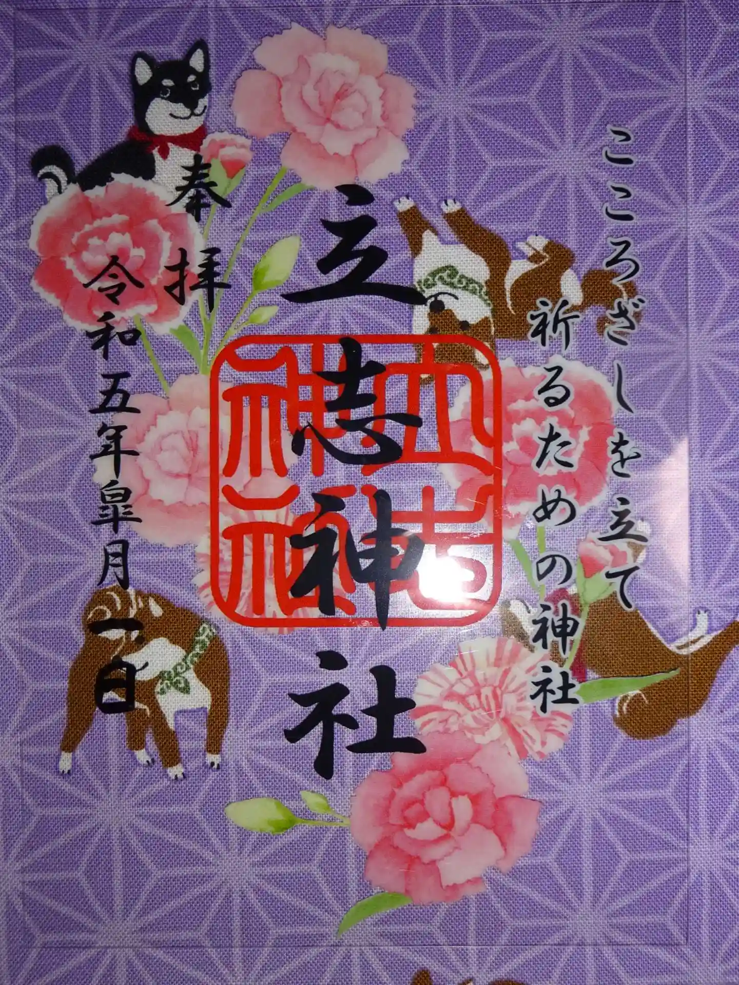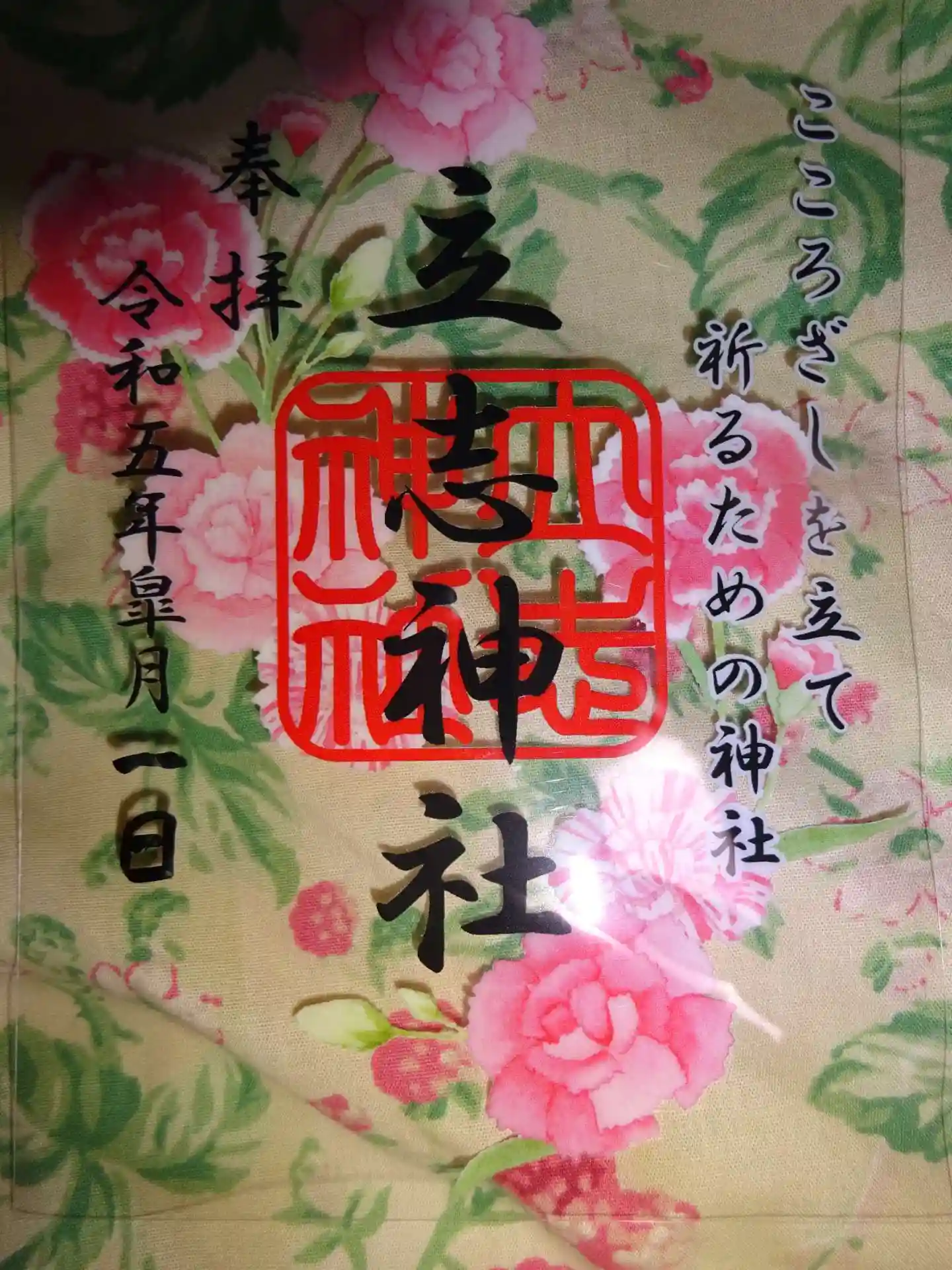 カーネーション模様が鮮やかな クリア御朱印 いただきました^^