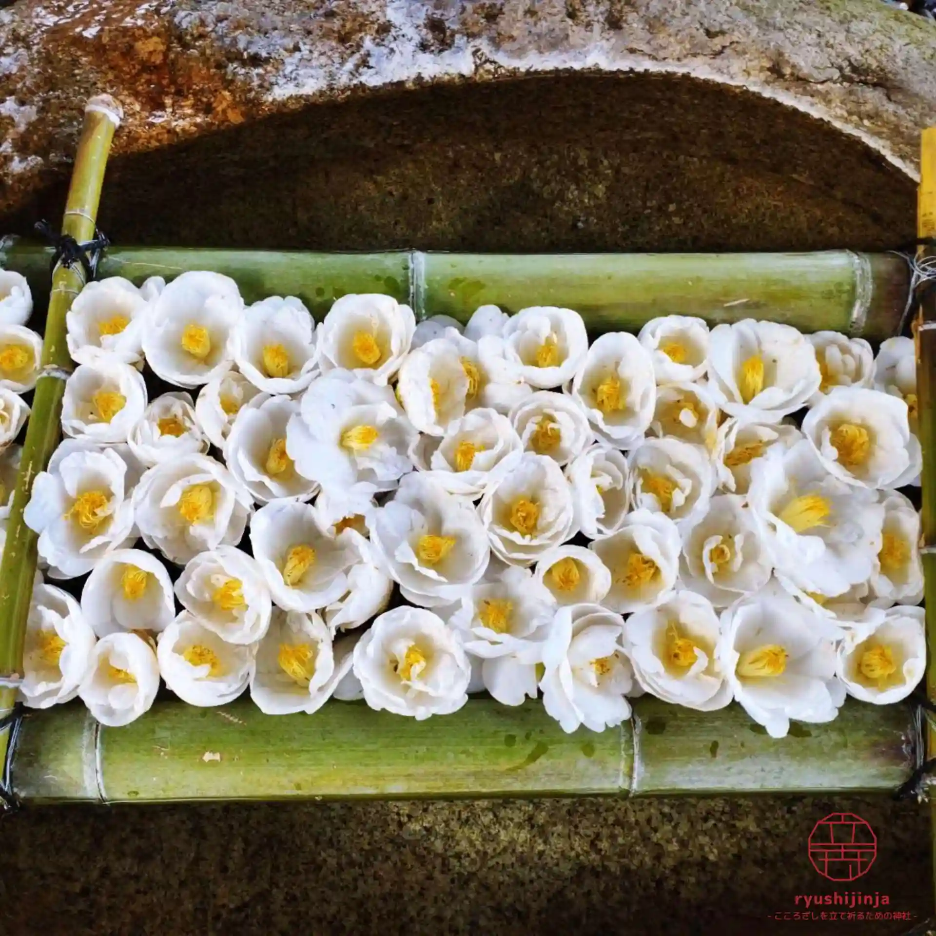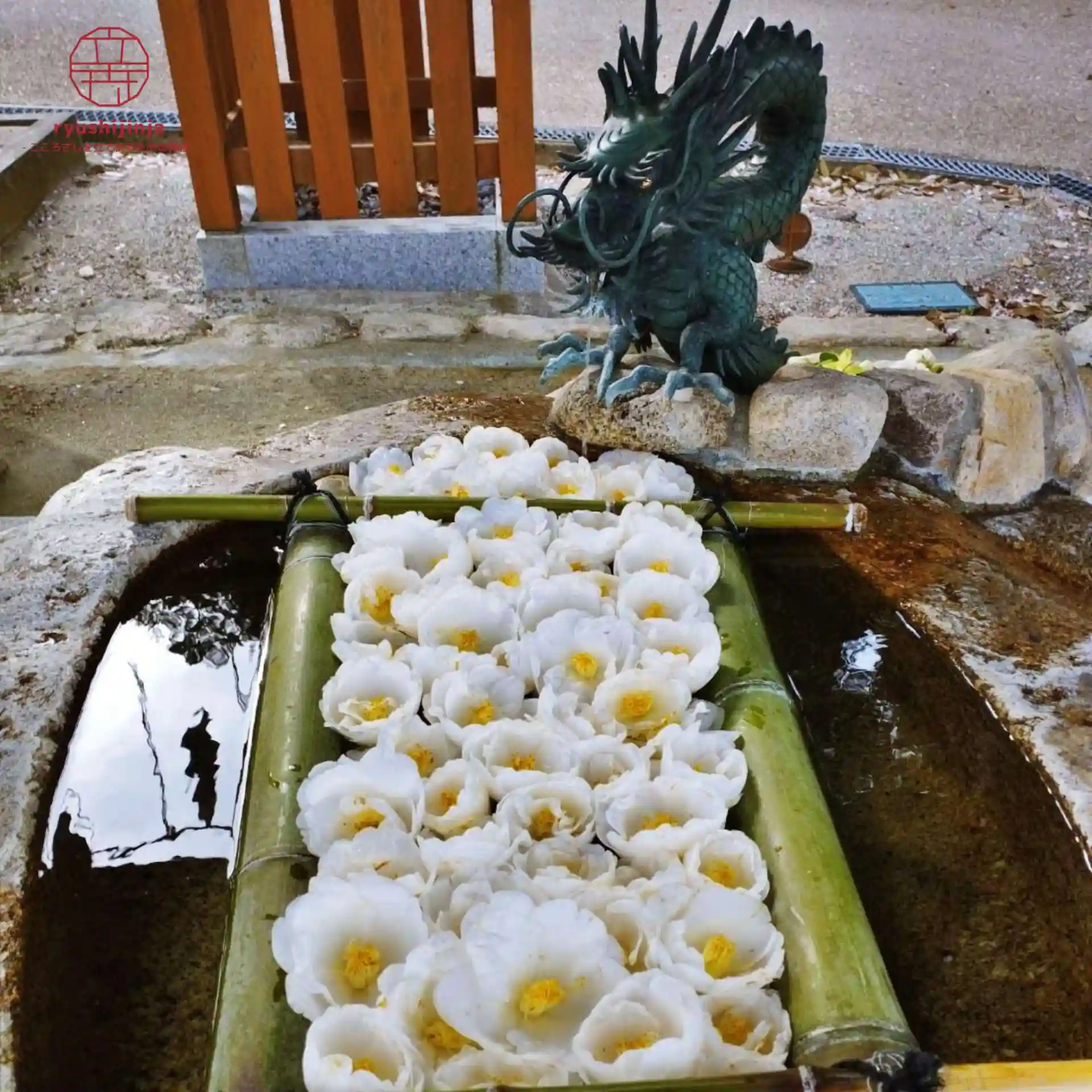 真っ白の椿の花手水です✿