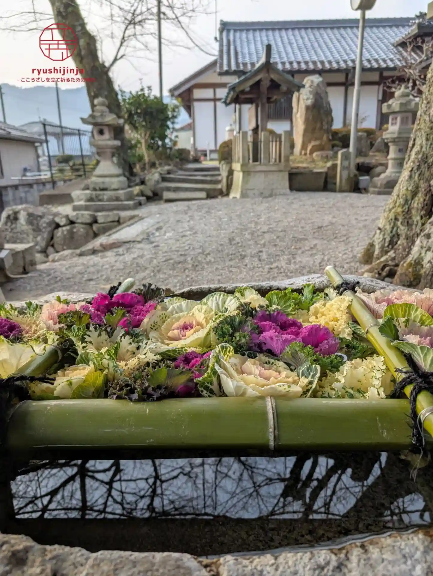 花手水は葉牡丹です🌸