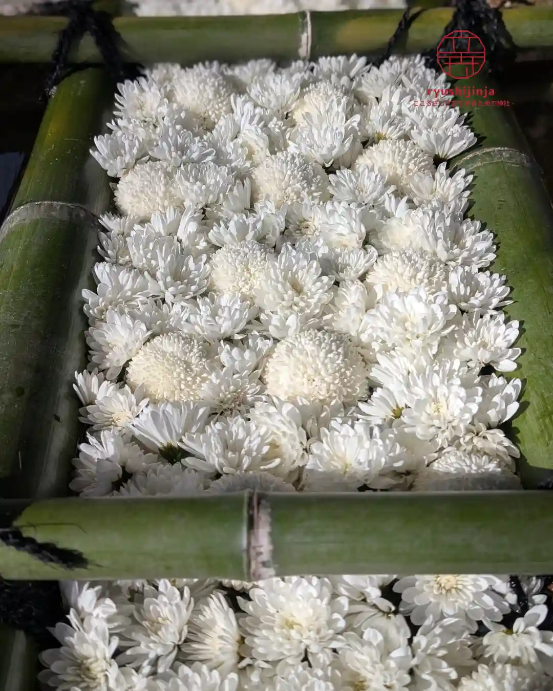 令和8年・午年にちなみ、白馬を想わせる真白の菊で花手水を彩りました。