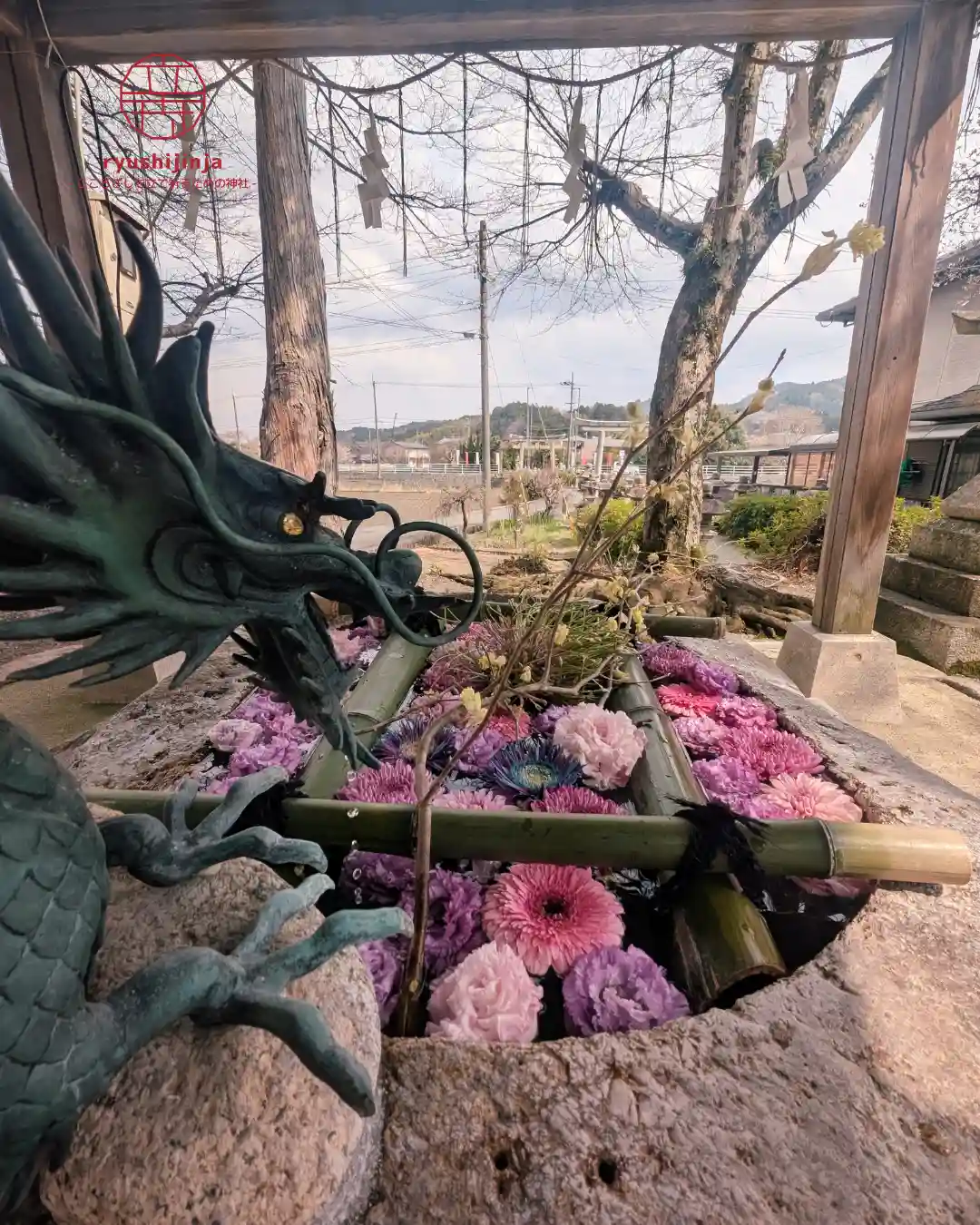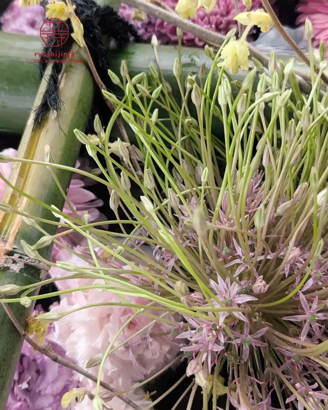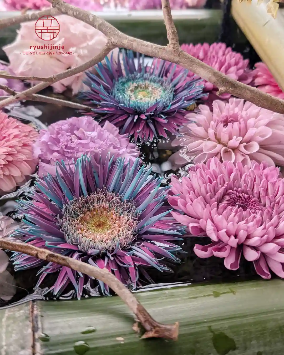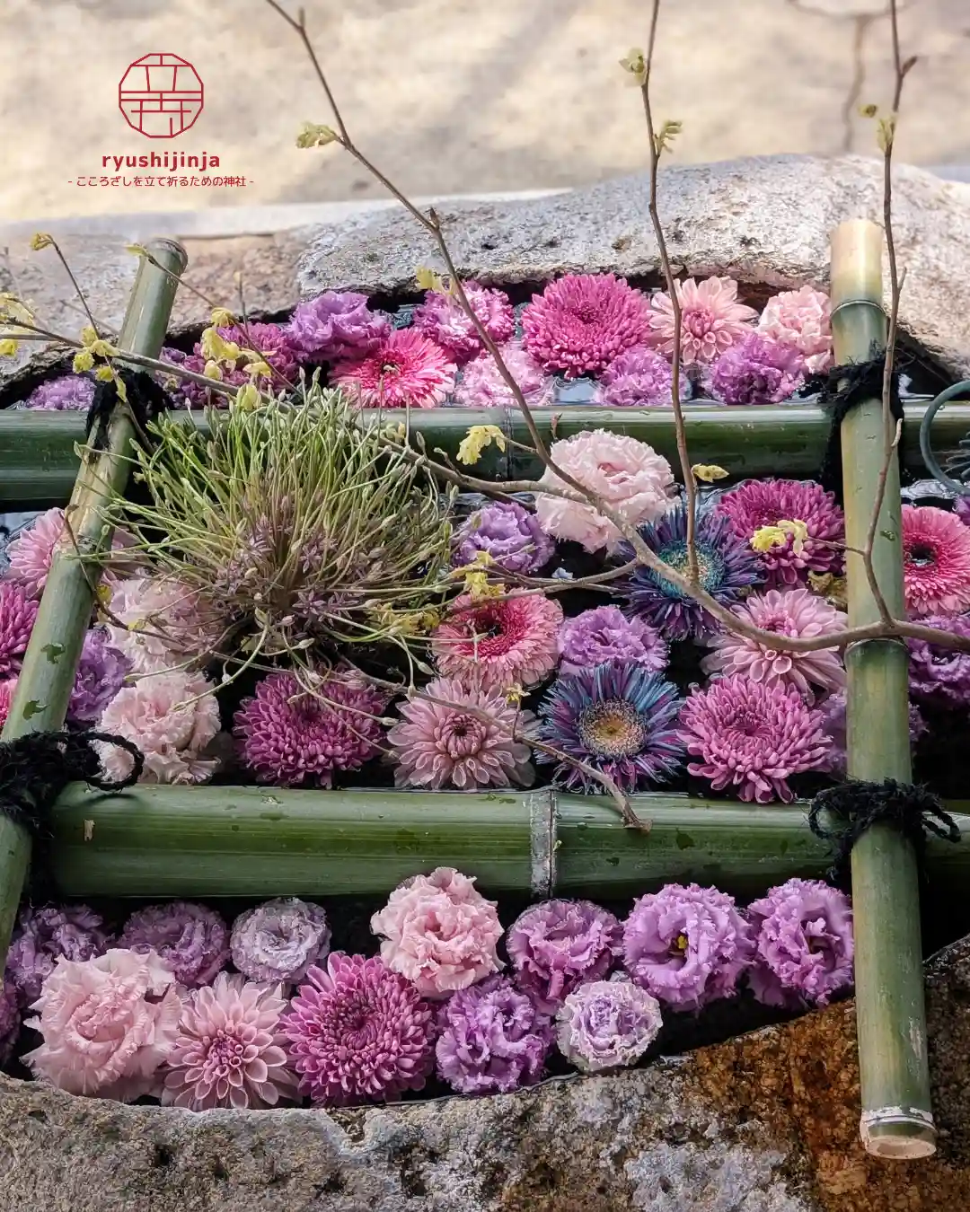 今月の花手水は、紫を基調とした気品ある装いです🌸