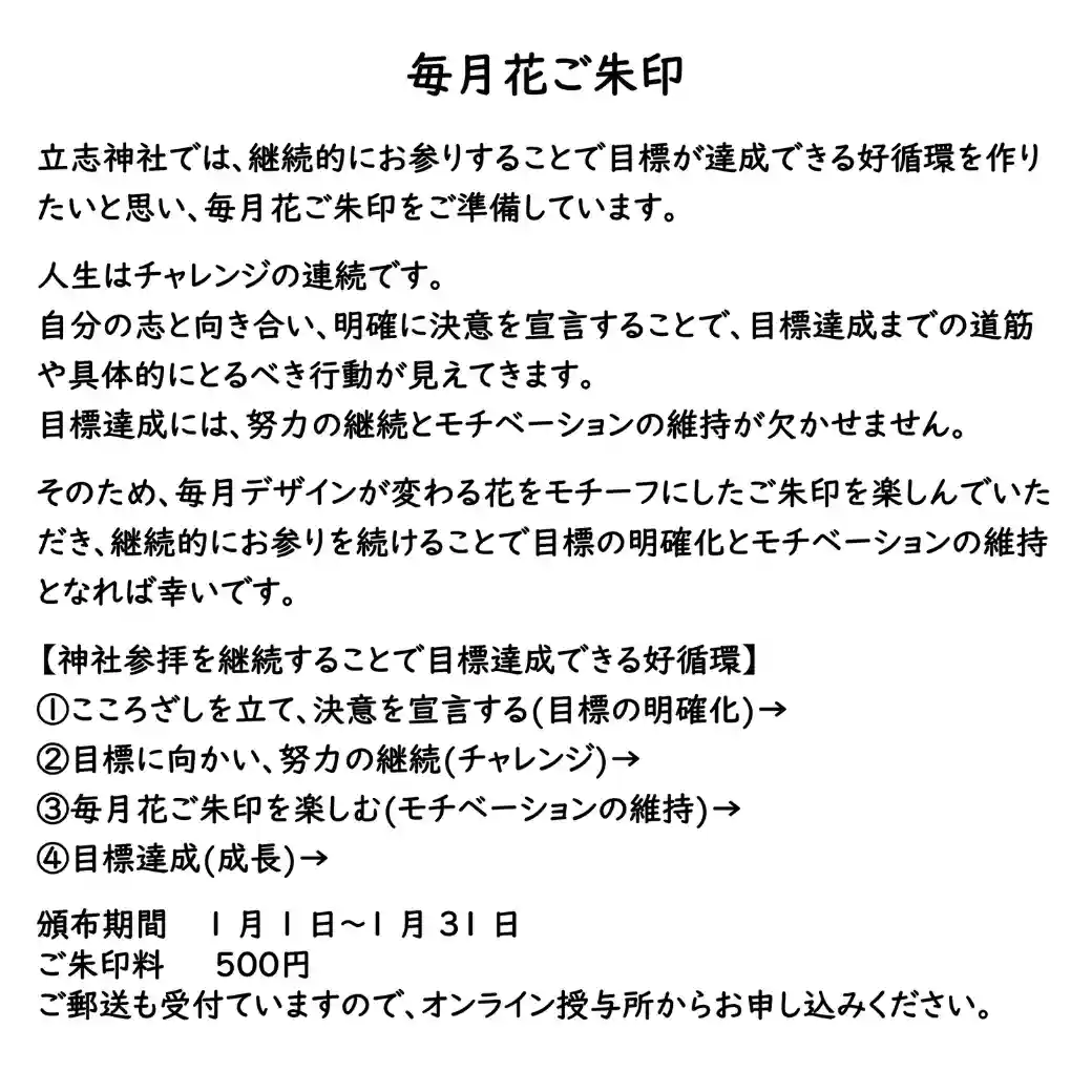 1月の透明花ご朱印の頒布を1/21より再開いたしました。