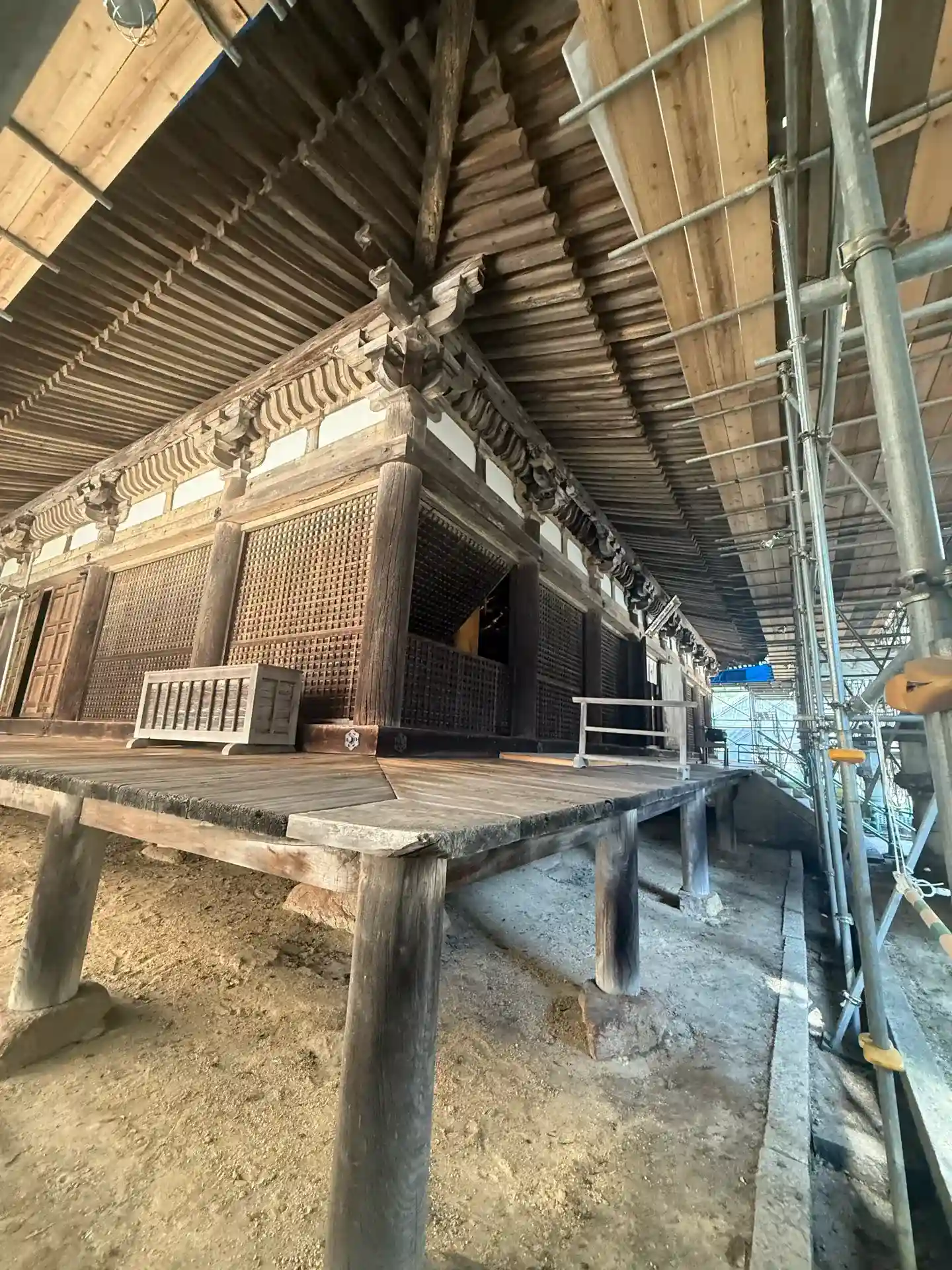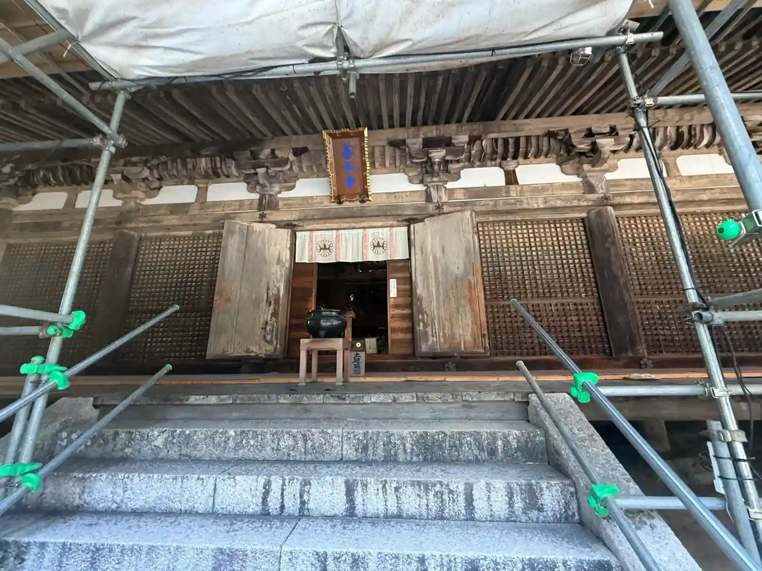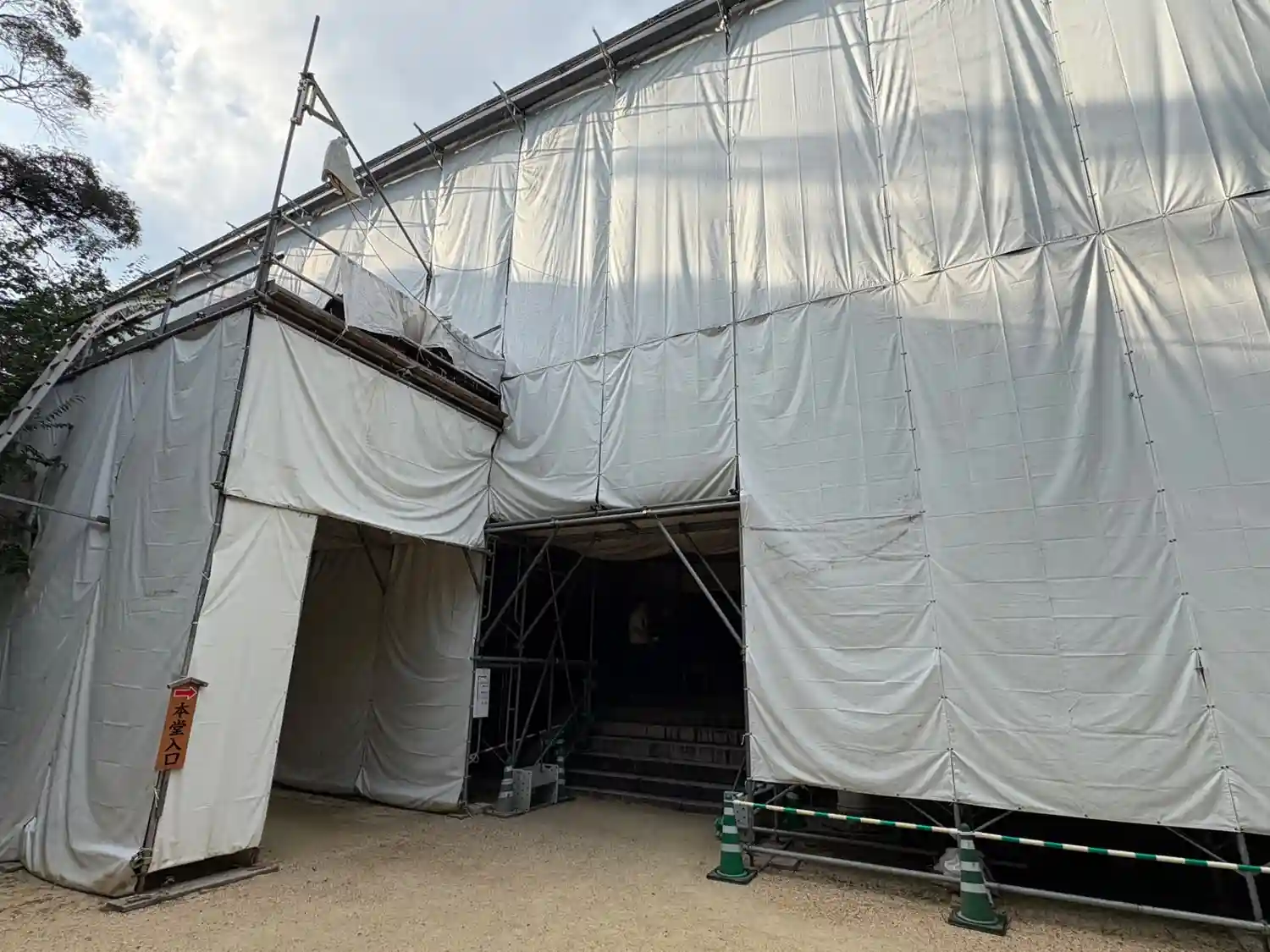 御本堂は改修工事中。改修が終わっ…