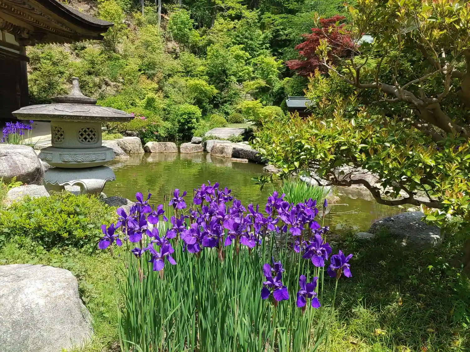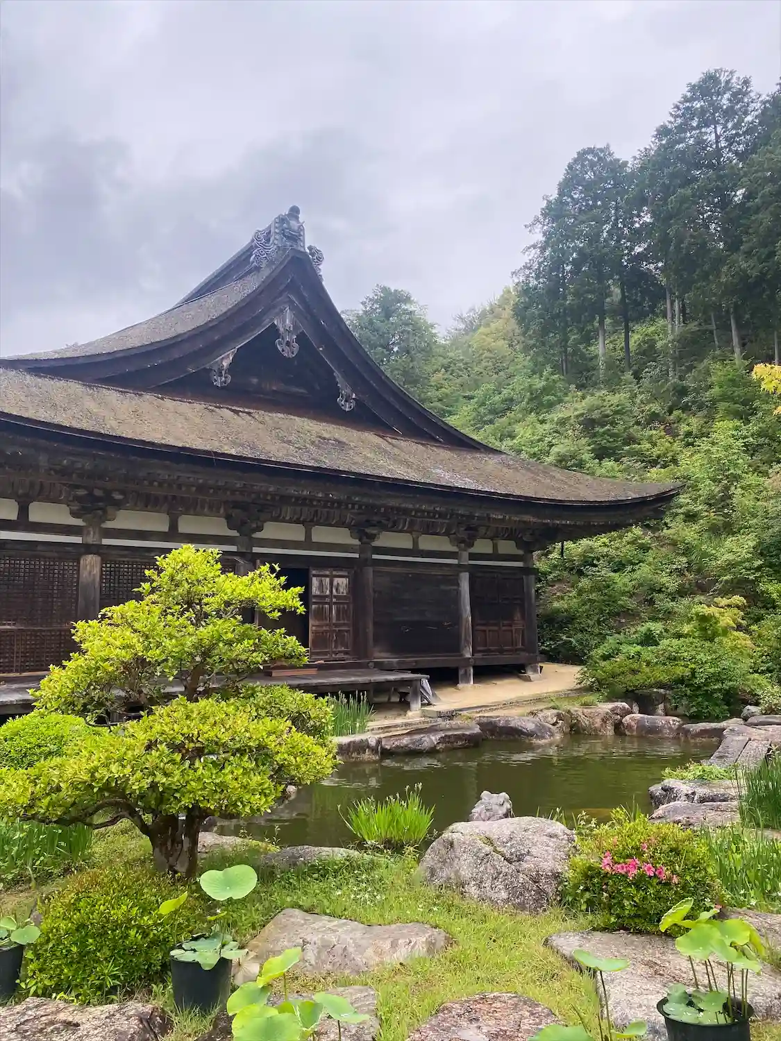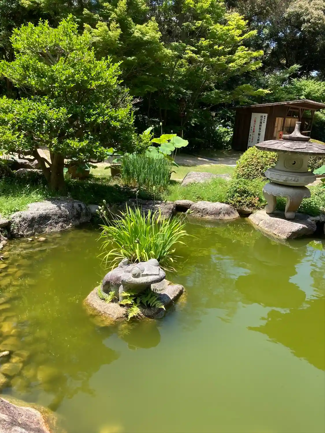 本堂横にある百伝池(ももつてのいけ)。