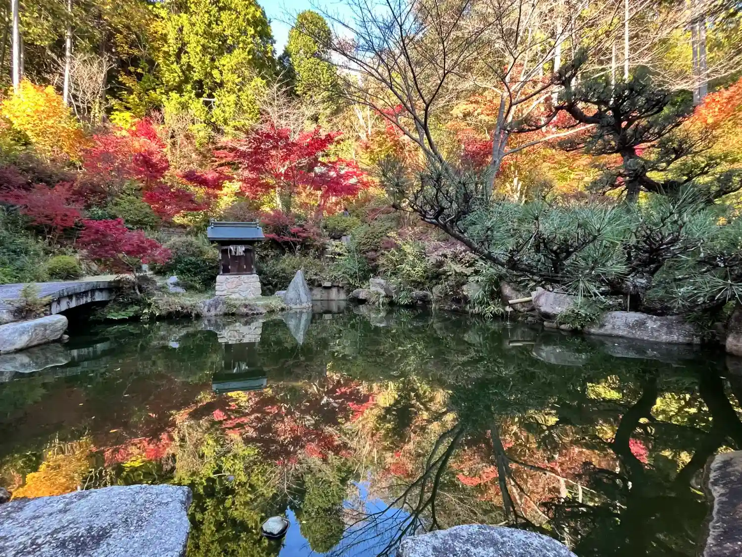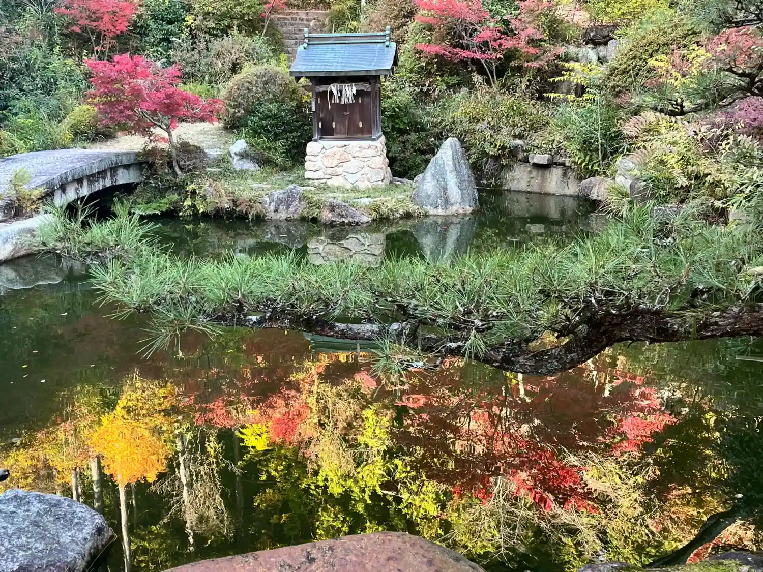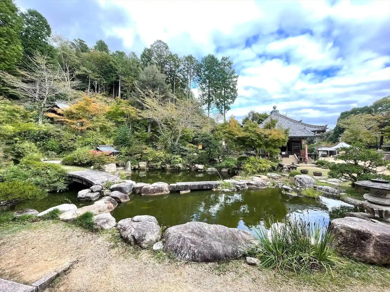 本堂横にある百伝池(ももつてのいけ)。