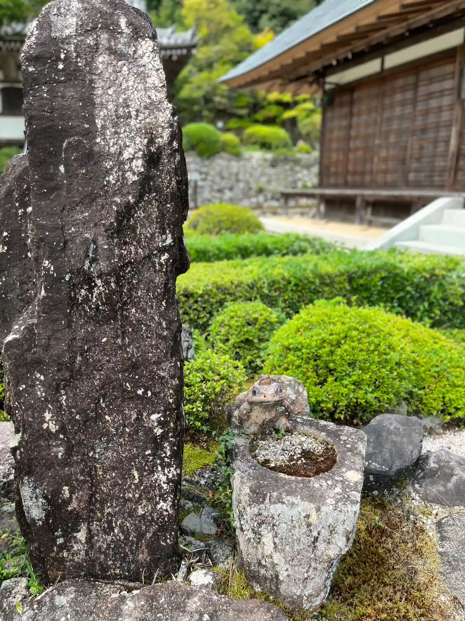 本堂前の手水盤、予想以上過ぎる水量に(笑)
