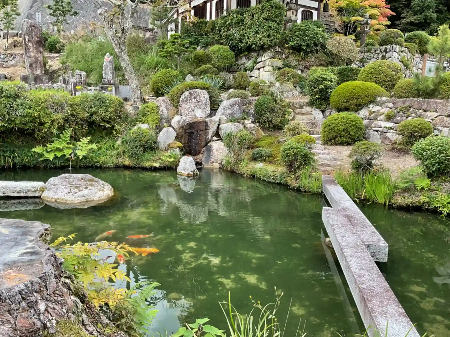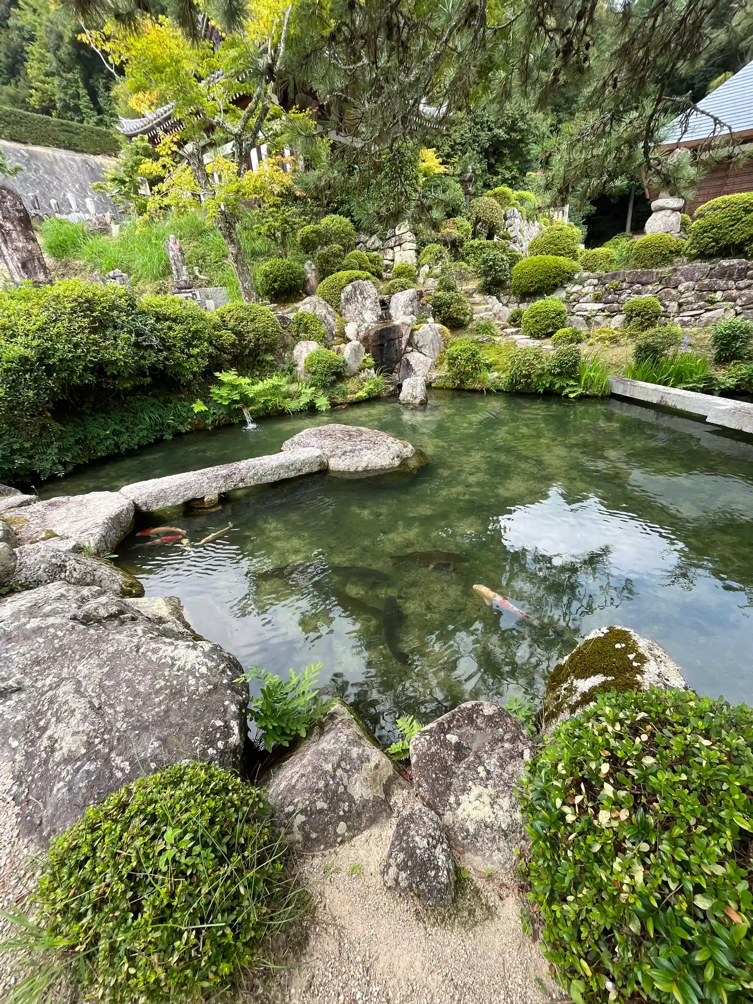 池の水は、この暑さでも冷たく、湧水の恵みのおかげさまか、鯉ちゃん達も元気に泳いでいました😊