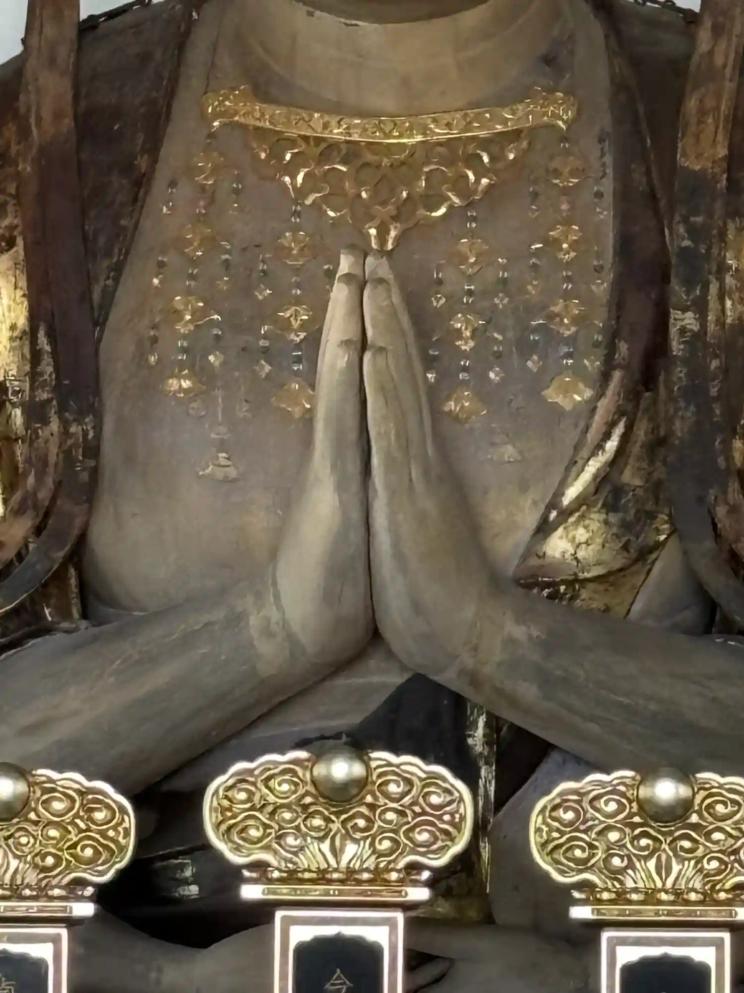 向かって左側の1番下の御手には何も法具をお持ちではありません。