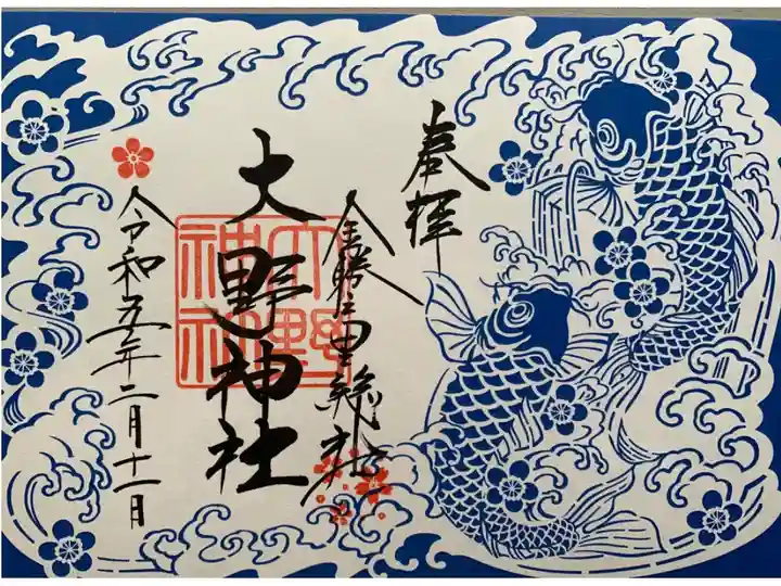 青い鯉の切り絵風御朱印。