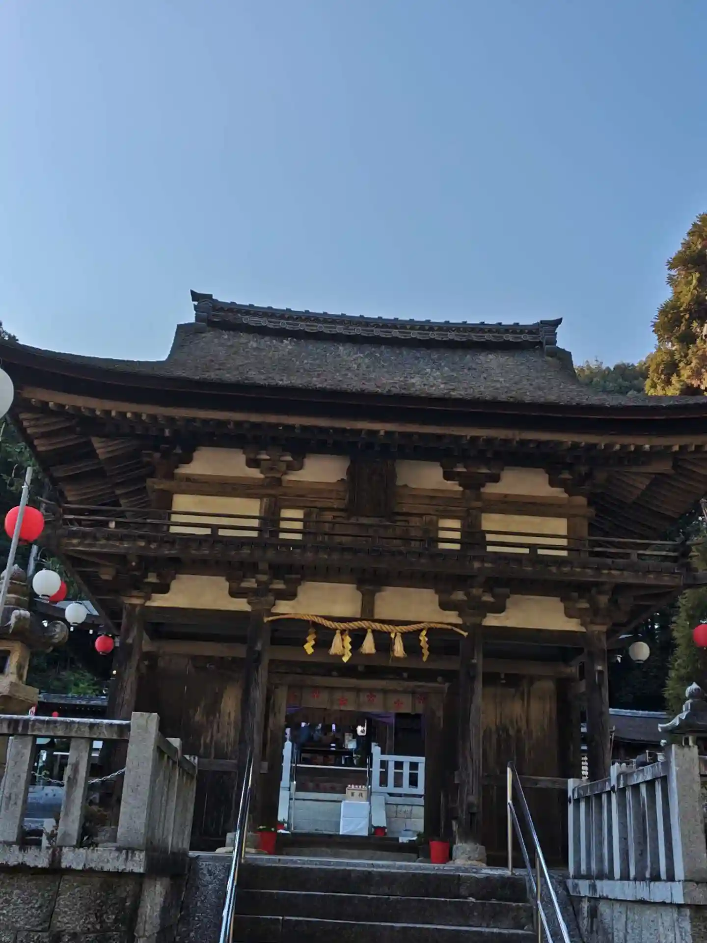 御本殿、拝殿から見た楼門