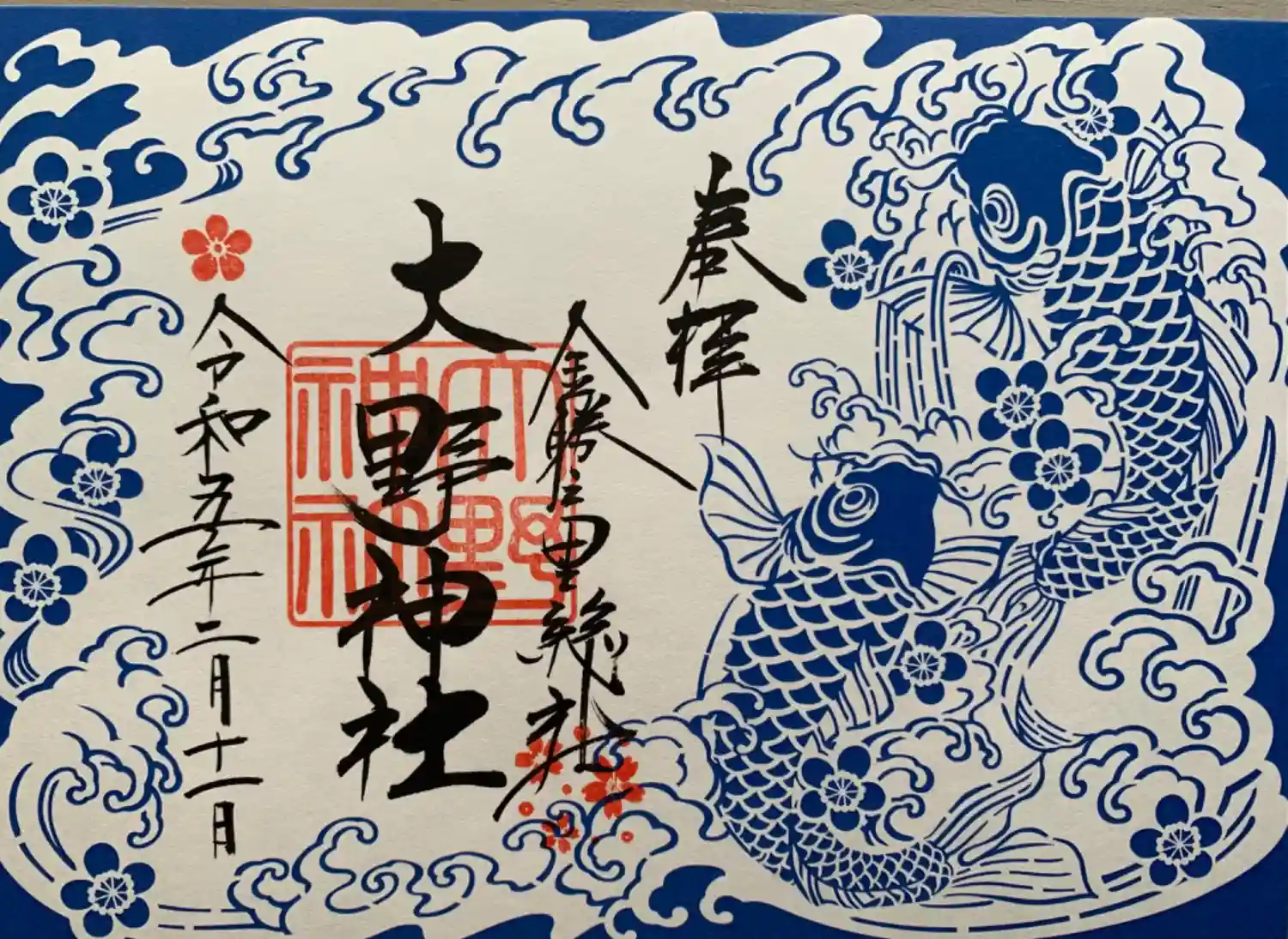 青い鯉の切り絵風御朱印。