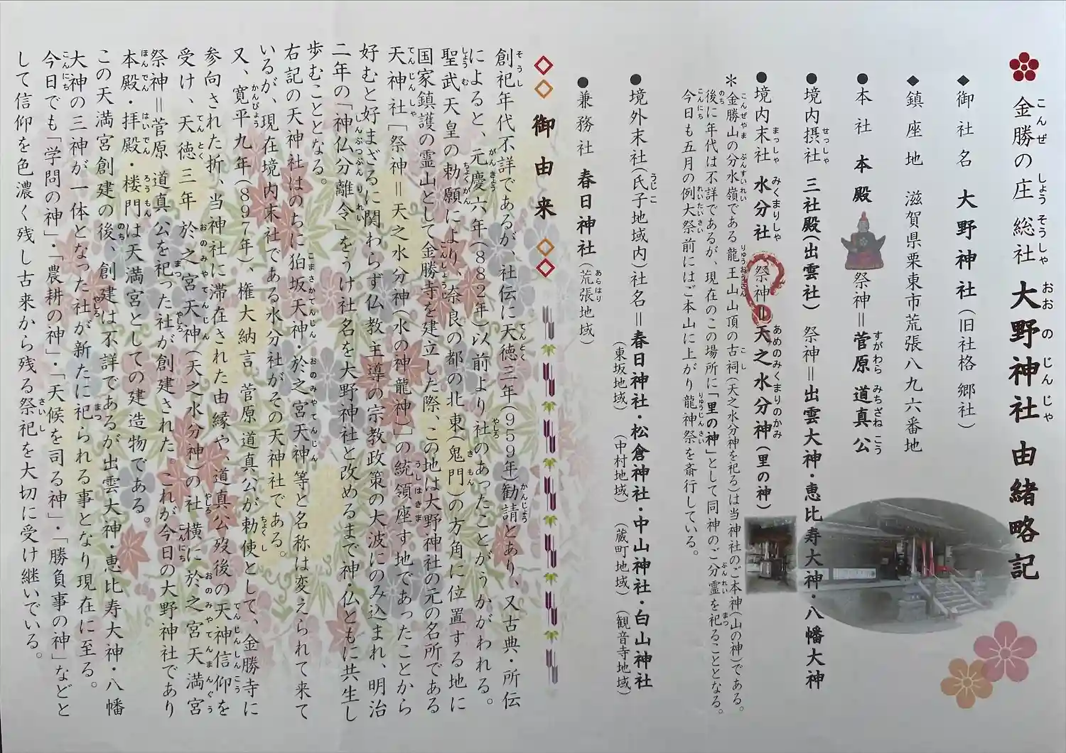 大野神社は、滋賀県栗東市に鎮座する神社です。⛩