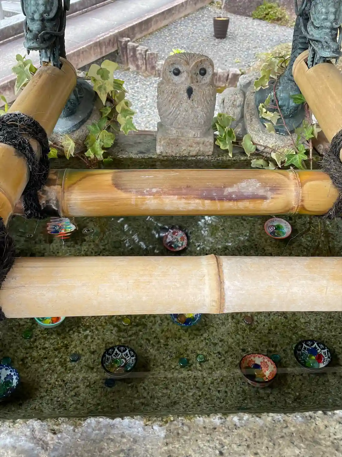 手水舎にも🦉さん