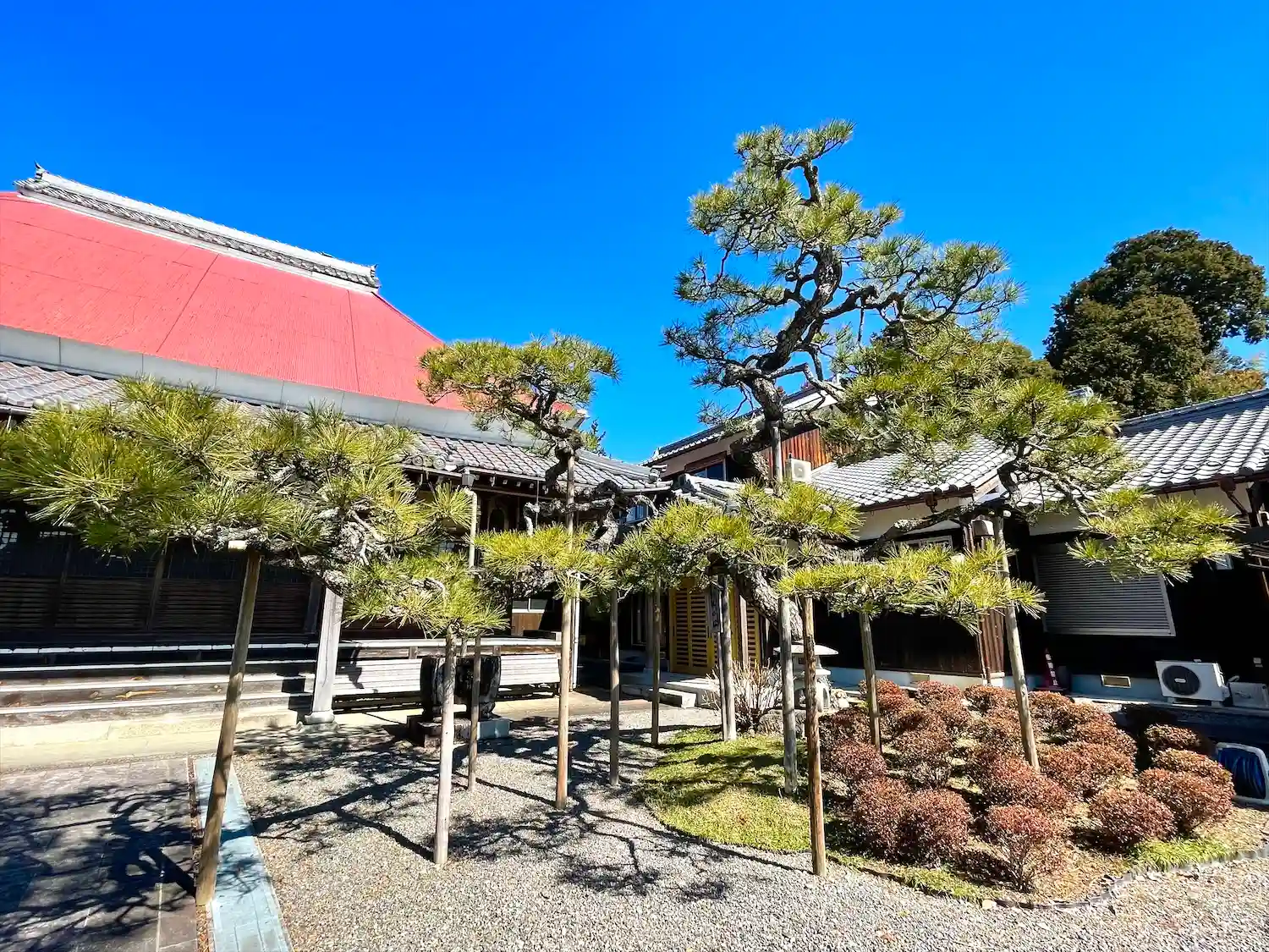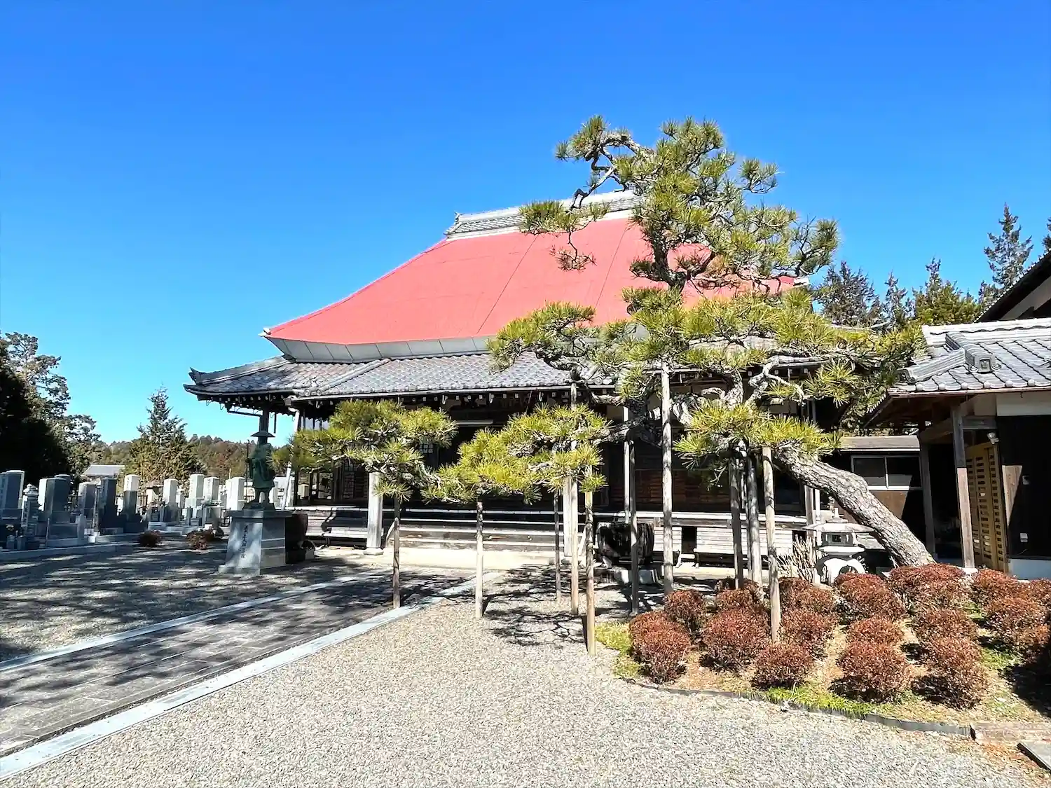 本堂前の臥龍の松は素晴らしいです。