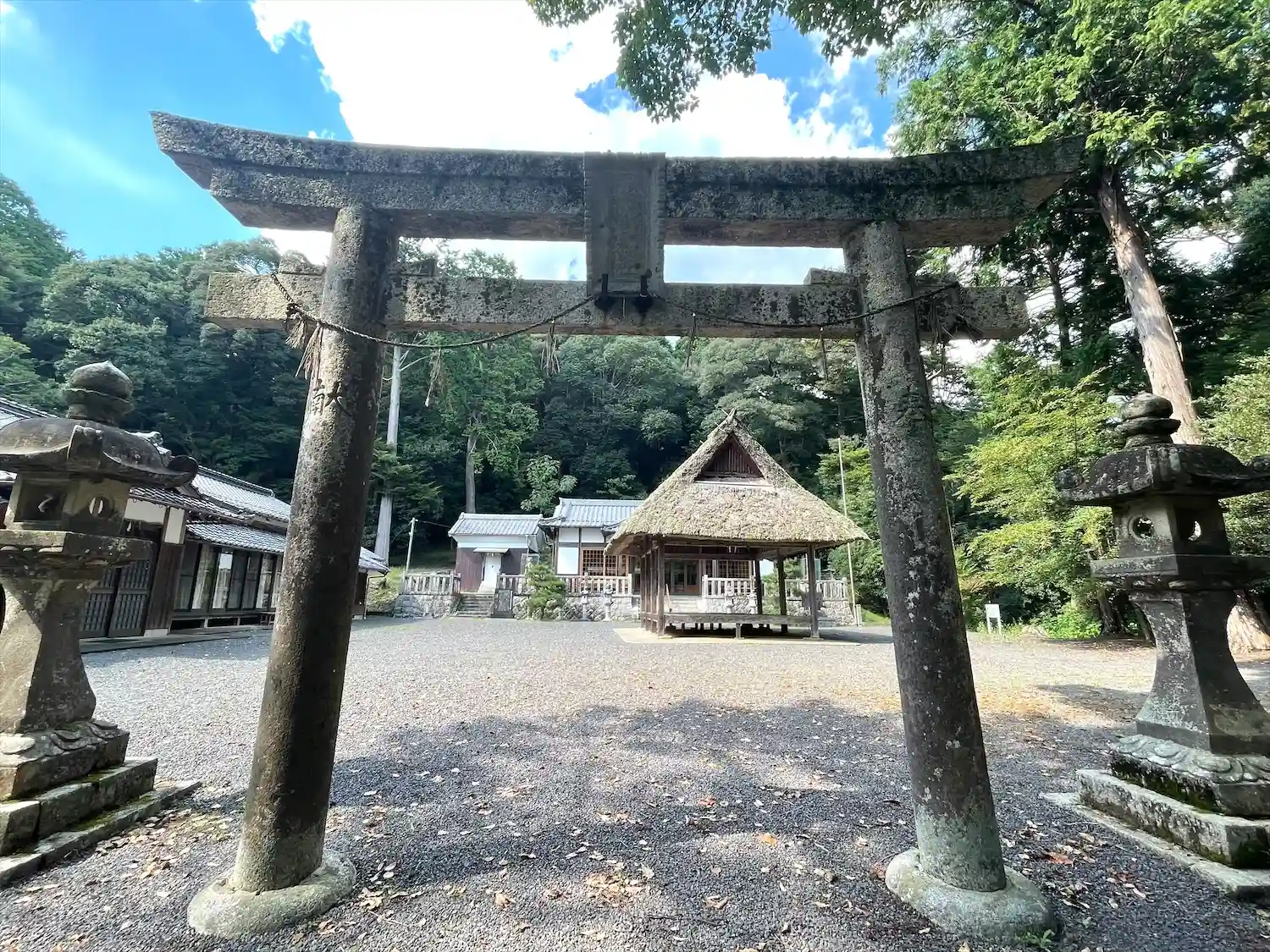 茅葺の能舞台は文政5年(1822)の建立で、例祭には金春流能楽が奉納されるそうです。この能楽は、宝永年間(1704-1711)に奈良の能師が伊勢参宮の折、当社前で腹痛を起こし、治してもらえたら毎年能を奉納しようと誓って祈ったところ平癒し、以降奉納が続いています。