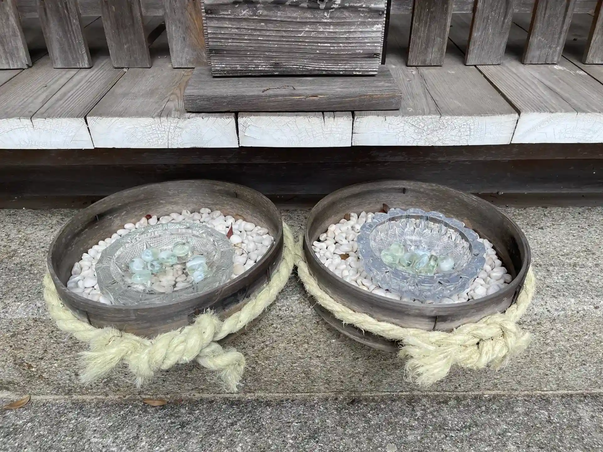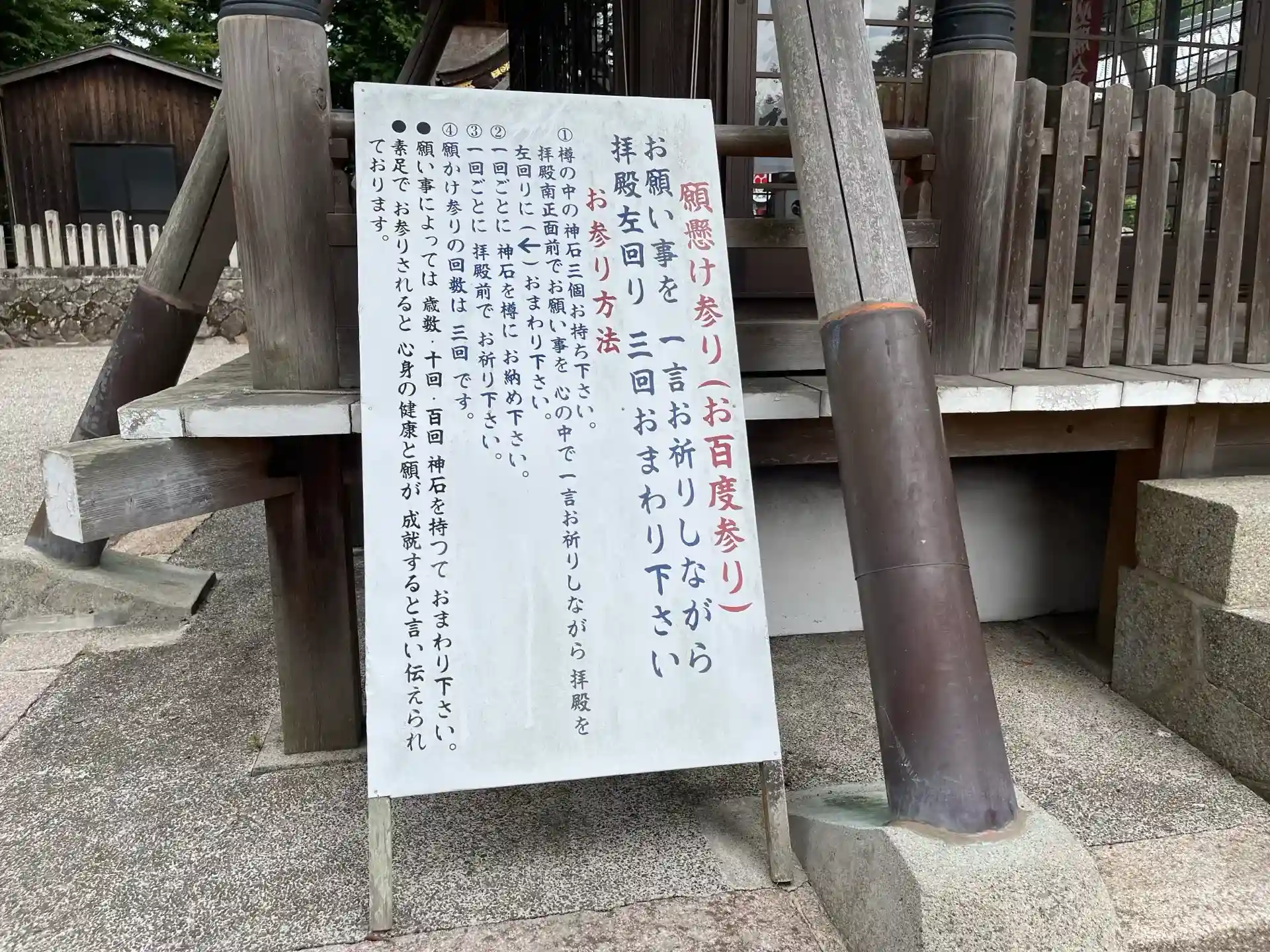 拝殿の周りを小石を3個取り、願い事を一言祈りながら3回まわると言う願掛けがあります。