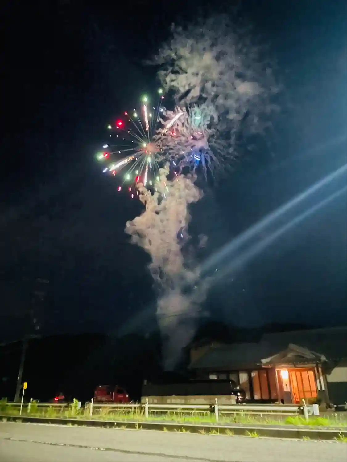 歩道橋から万燈祭の登りが見えたので!