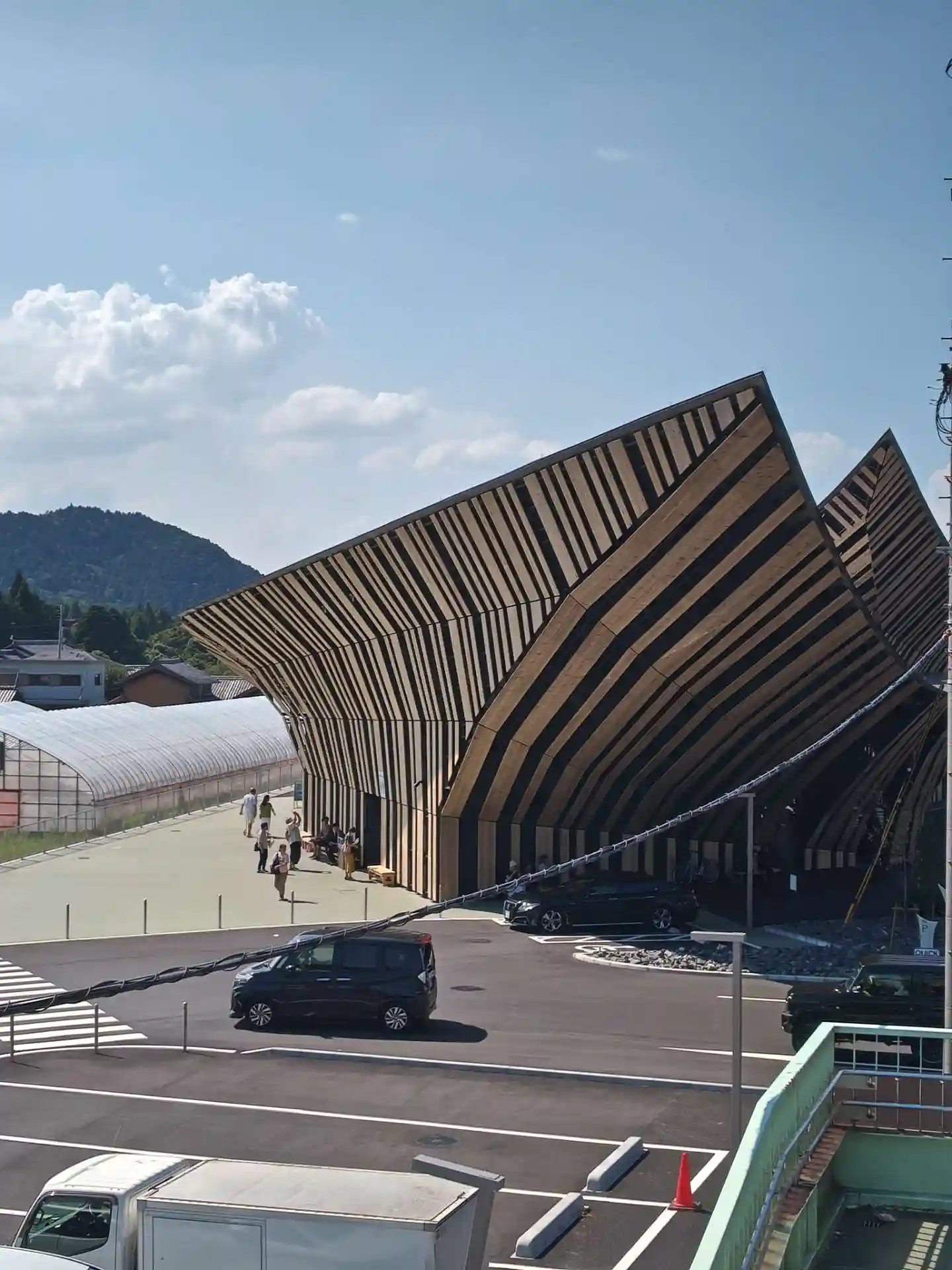 R1沿い。道を挟んで「道の駅あいの土山」。交通量が多いので歩道橋を渡…