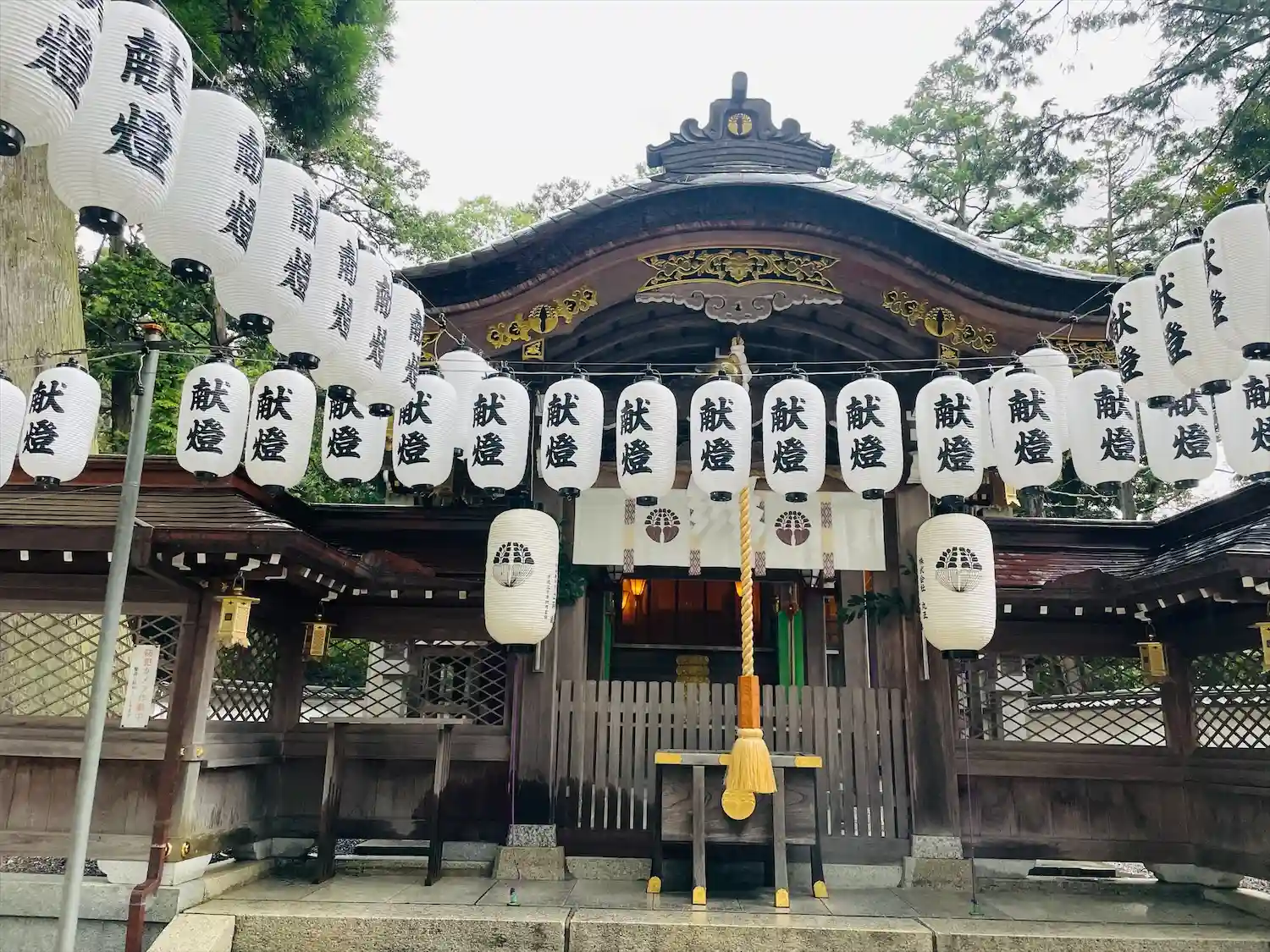 来週開催される万灯祭の準備が進んでおり、半分くらいの提灯が並…