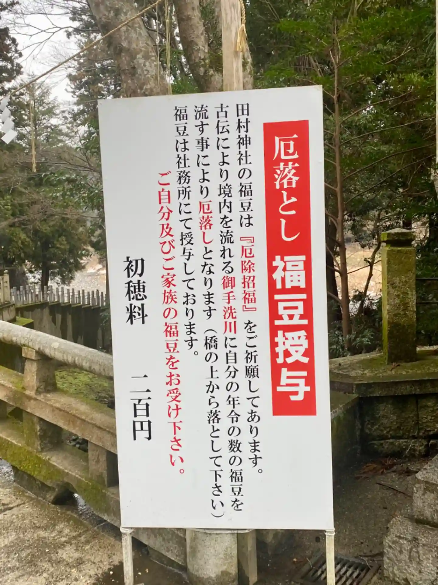 福豆を太鼓橋から川に投げて、厄除け…