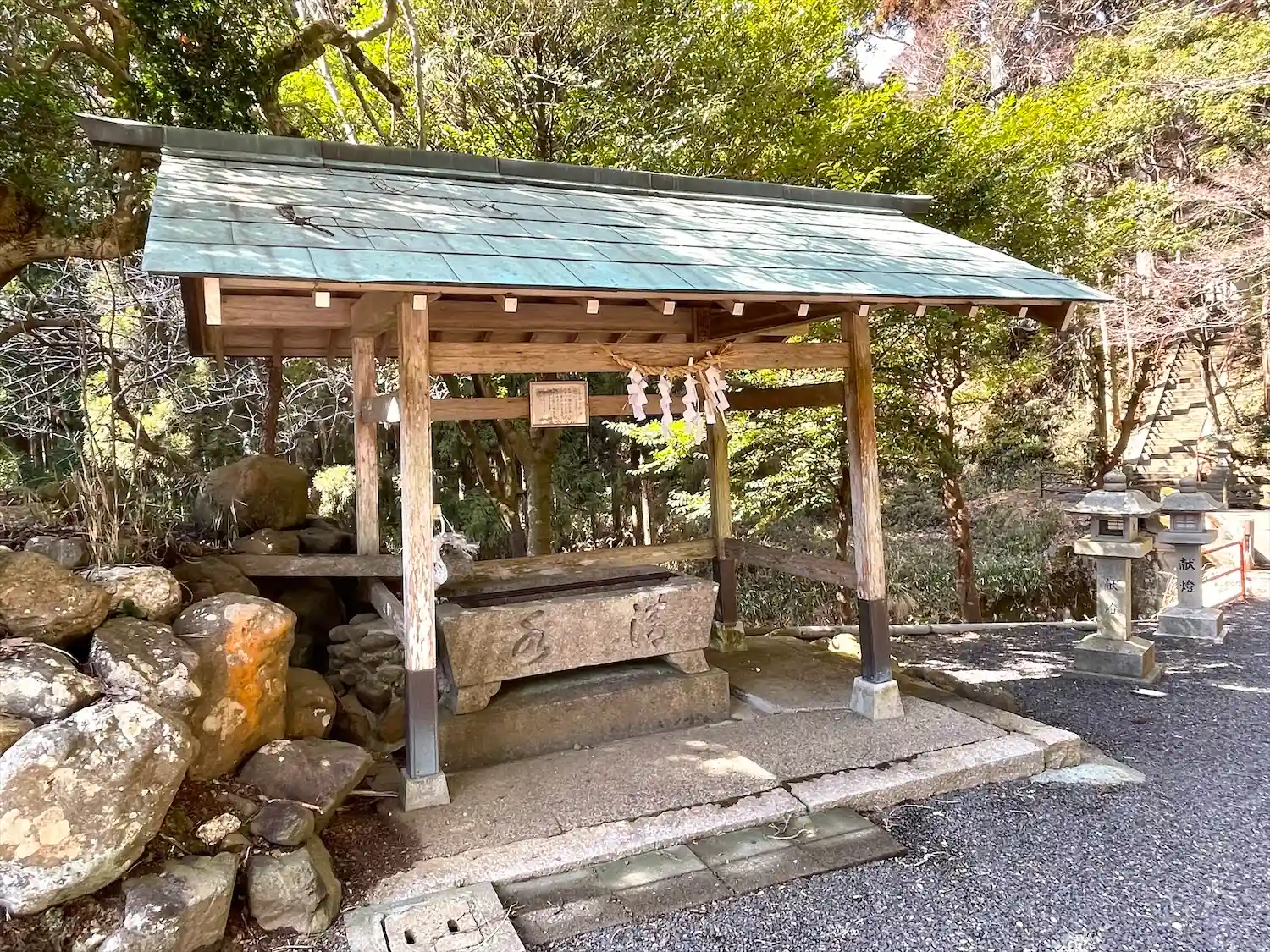 参道の途中には小さいながらも滝があり、水の音が心地よかったです。