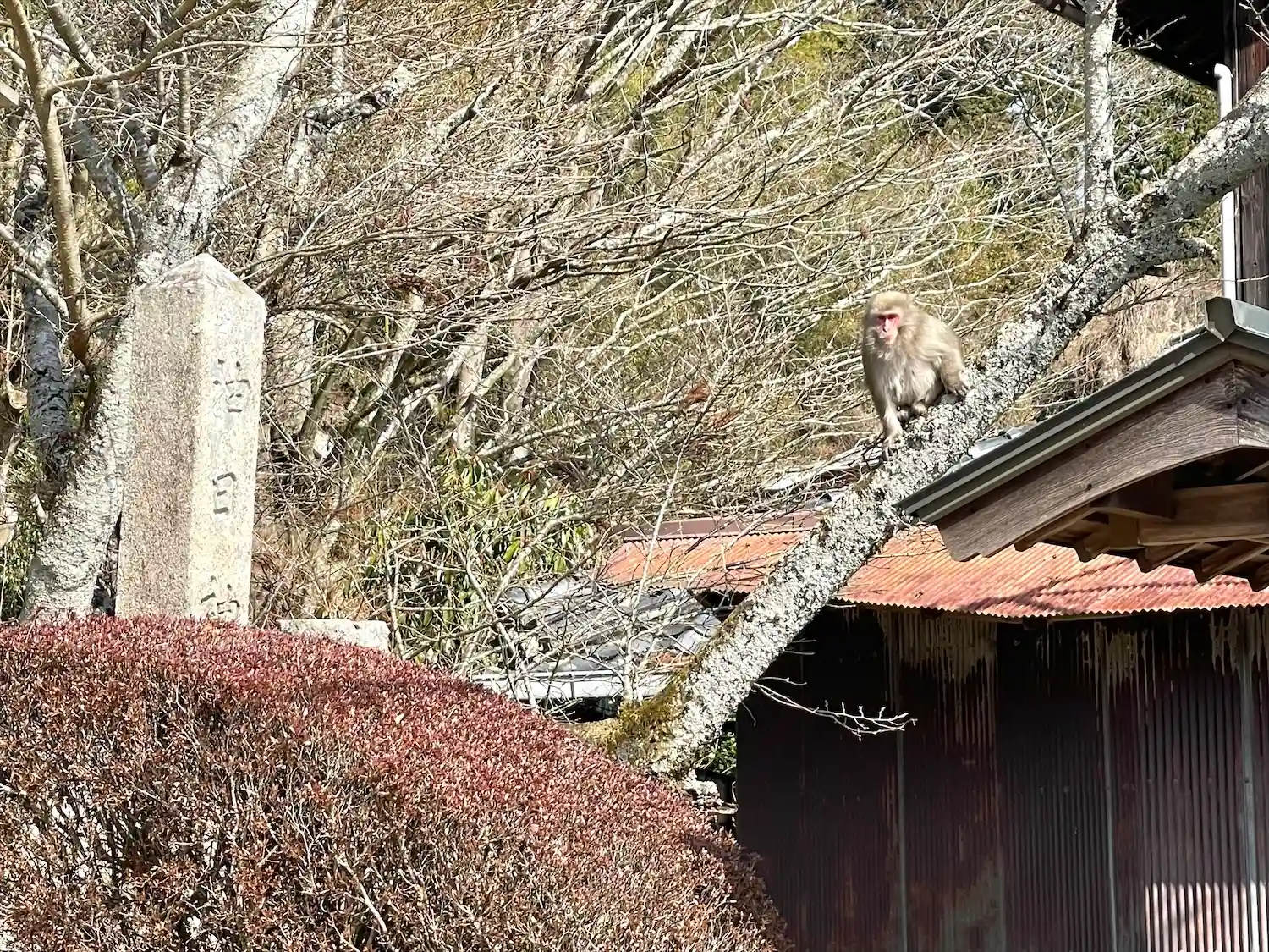 神社周辺に野生の猿がいるので、参拝の際はご注意を。